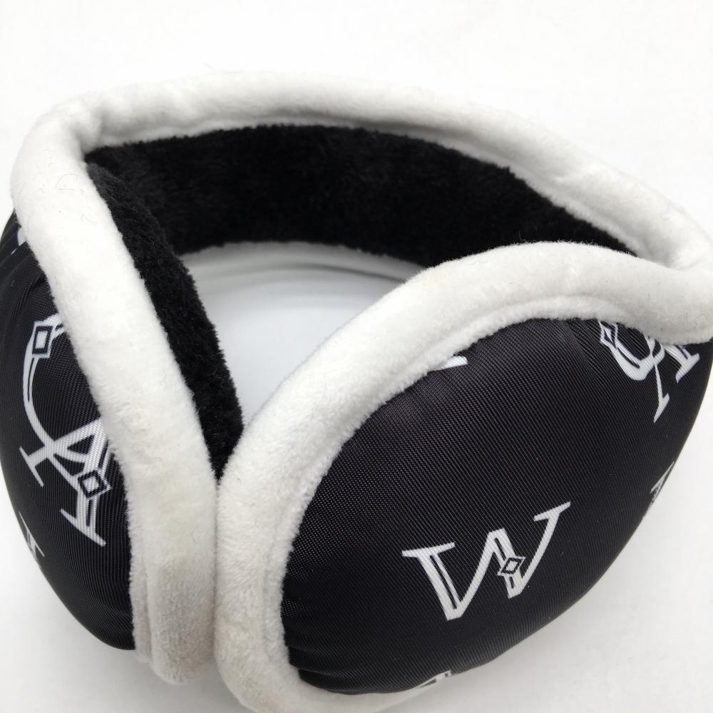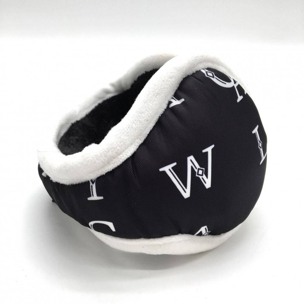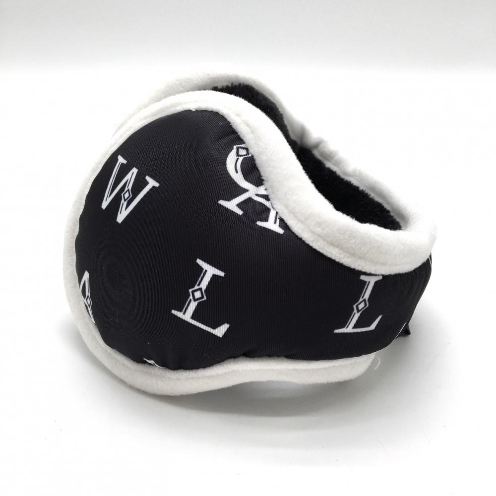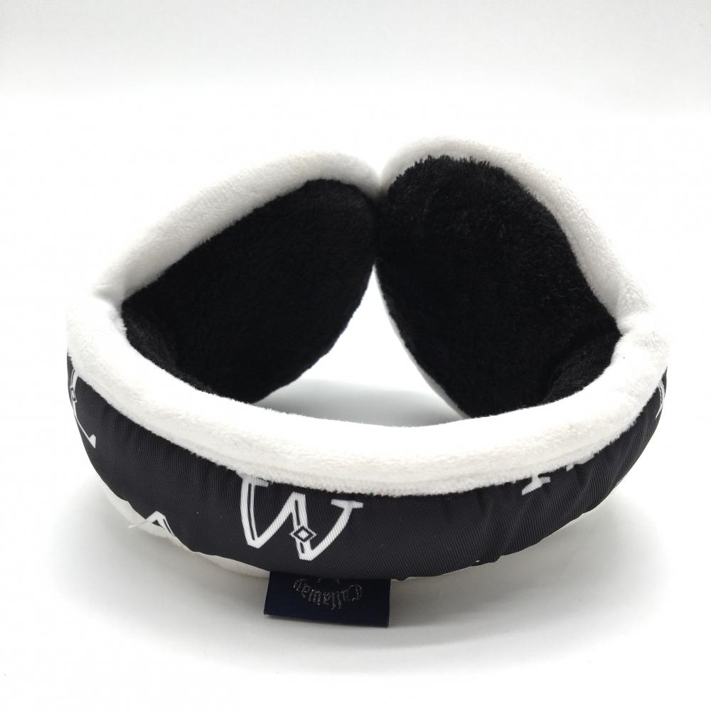 【美品】キャロウェイ イヤーマフ ネイビー×白 英字総柄 内側起毛 ゴルフ Callaway