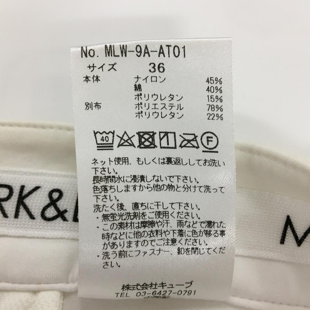 【美品】マークアンドロナ パンツ 白 ストレッチ ナイロン混 シリコンワッペン レディース 36(S) ゴルフウェア MARK&LONA