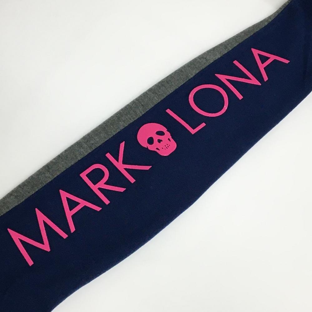 【超美品】マークアンドロナ レギンス ネイビー×グレー 起毛素材 ストレッチ 裾ロゴピンク レディース WS(S) ゴルフウェア MARK&LONA