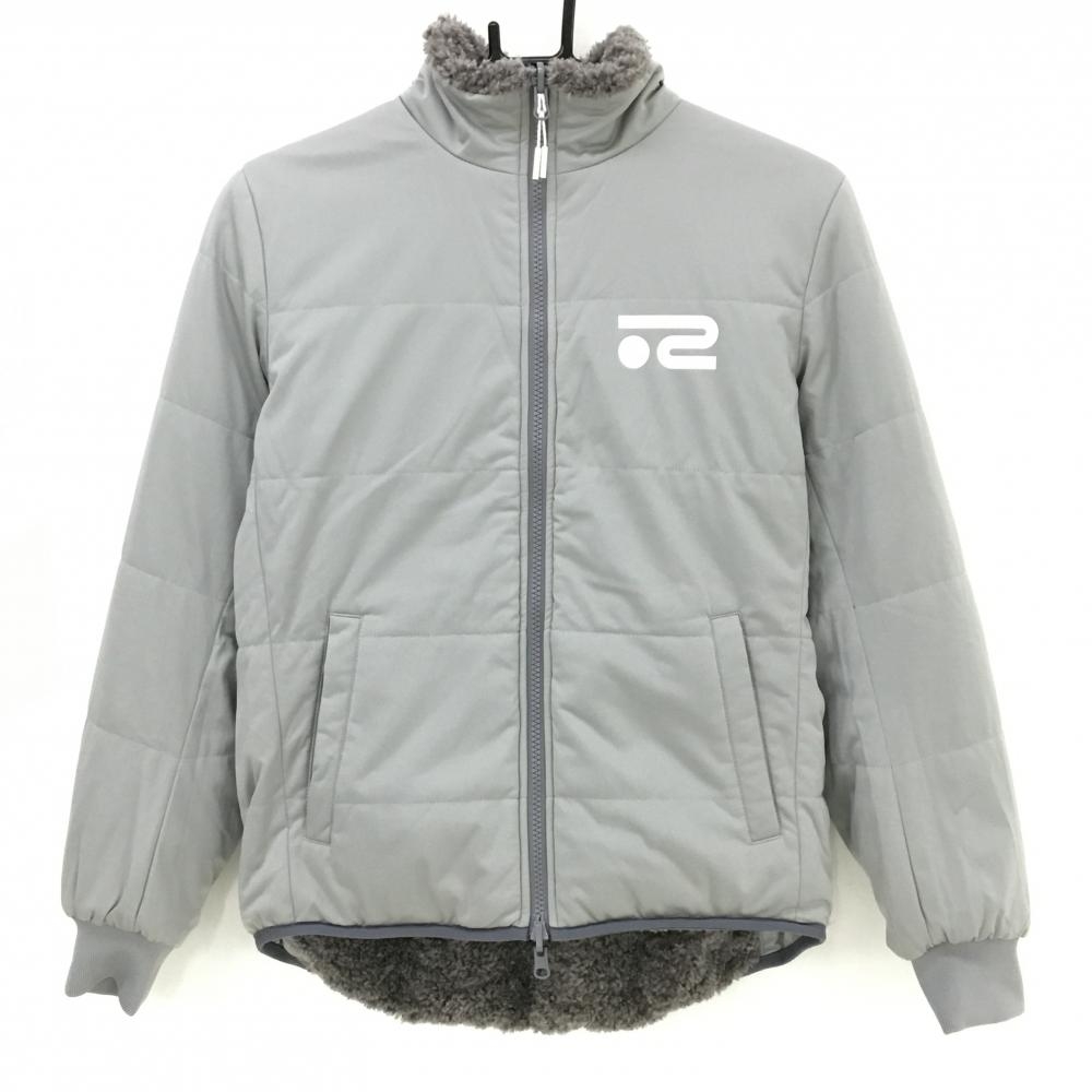 【美品】ロサーセン 中綿リバーシブルジャケット グレー 切替ボア フロントロゴ 裏無地 レディース M ゴルフウェア Rosasen