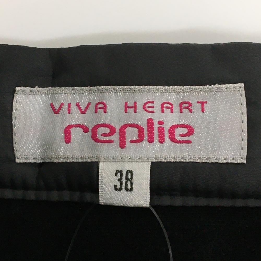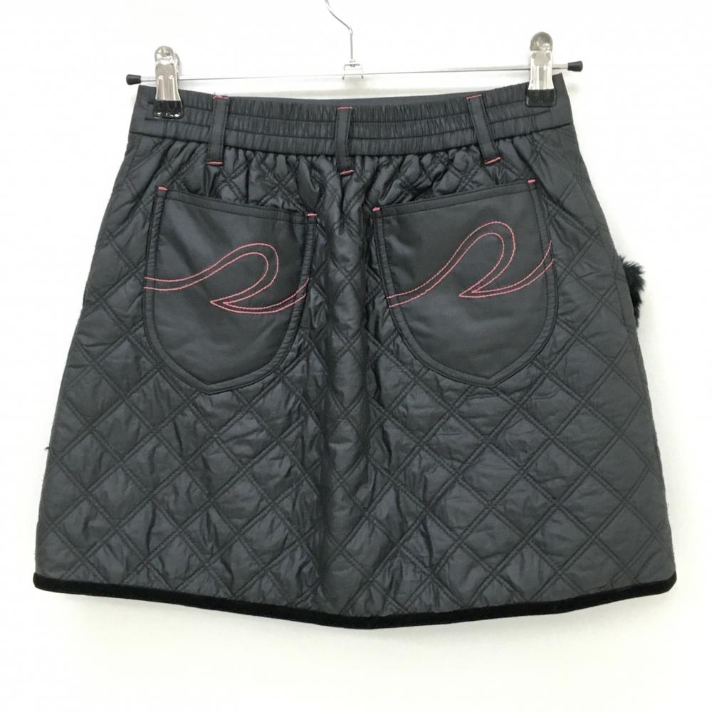 【超美品】ビバハートreplie 中綿スカート 黒 キルティング 裏起毛 ポケット口ファー レディース 38(S) ゴルフウェア VIVA HEART