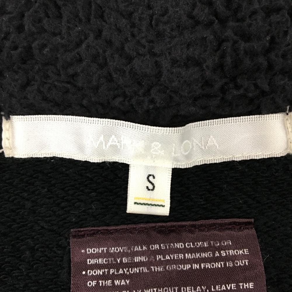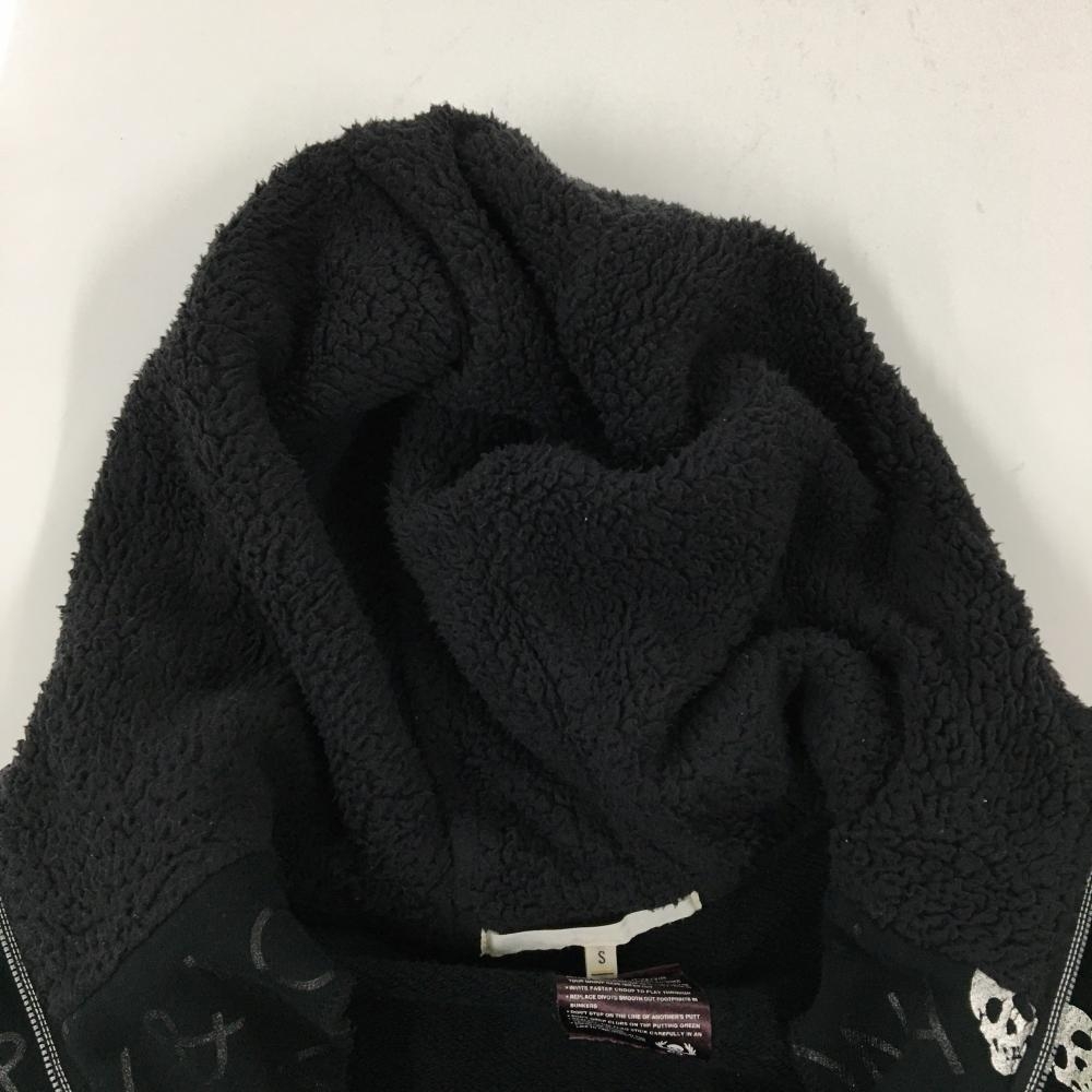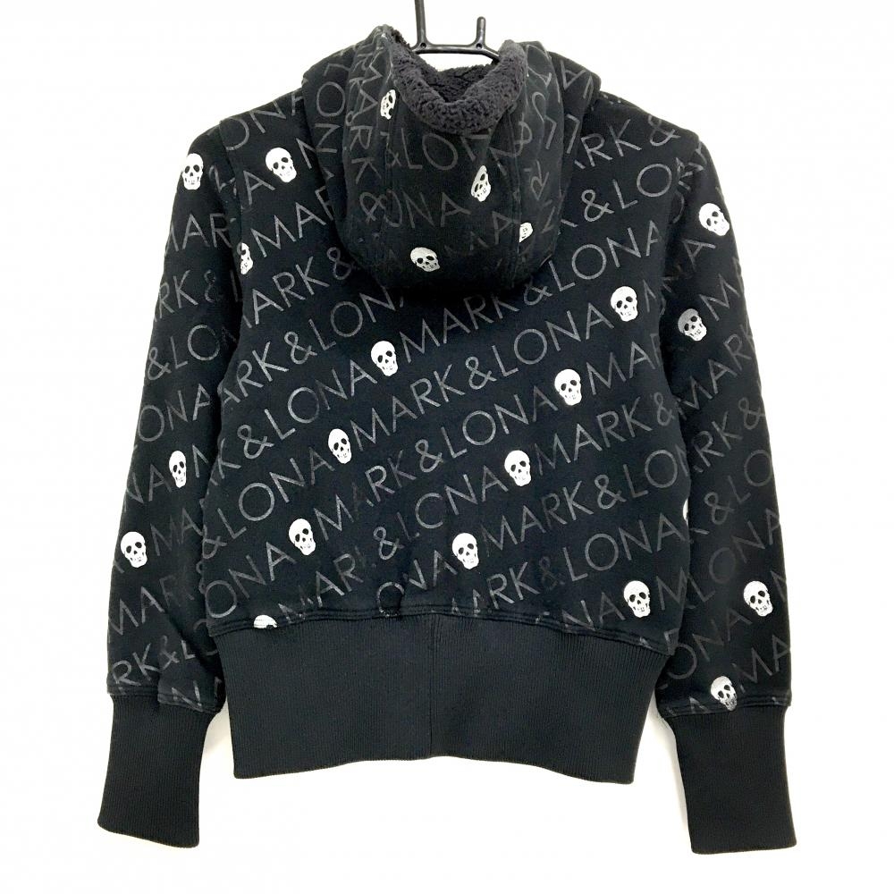 【美品】マークアンドロナ ジップパーカー 黒×シルバー ロゴ・スカル総柄 フード内側ボア レディース S ゴルフウェア MARK&LONA