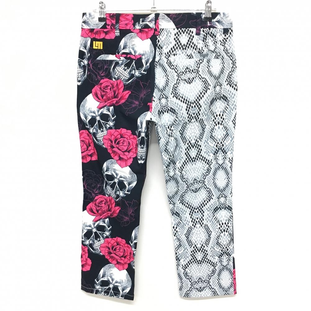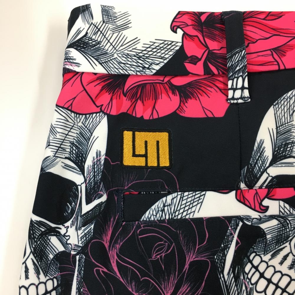【美品】ラウドマウス パンツ 黒×ピンク 総柄 スカルズ&ロージズ メンズ L ゴルフウェア LOUDMOUTH