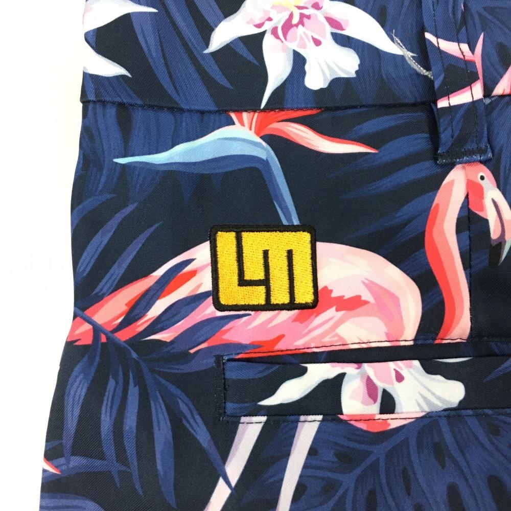 【美品】ラウドマウス パンツ ネイビー×ピンク 総柄 キーラーゴ メンズ L ゴルフウェア サンプル品 LOUDMOUTH