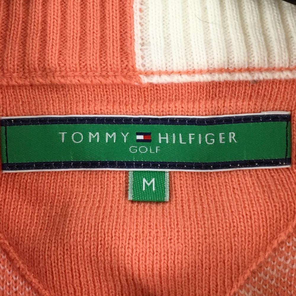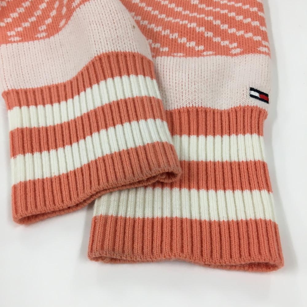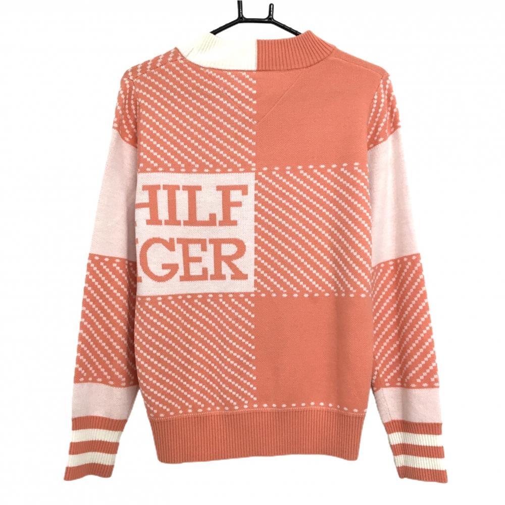 トミーヒルフィガー セーター サーモンピンク×白 一部柄 フロントロゴ ウール混 ニット レディース M ゴルフウェア Tommy Hilfiger Golf