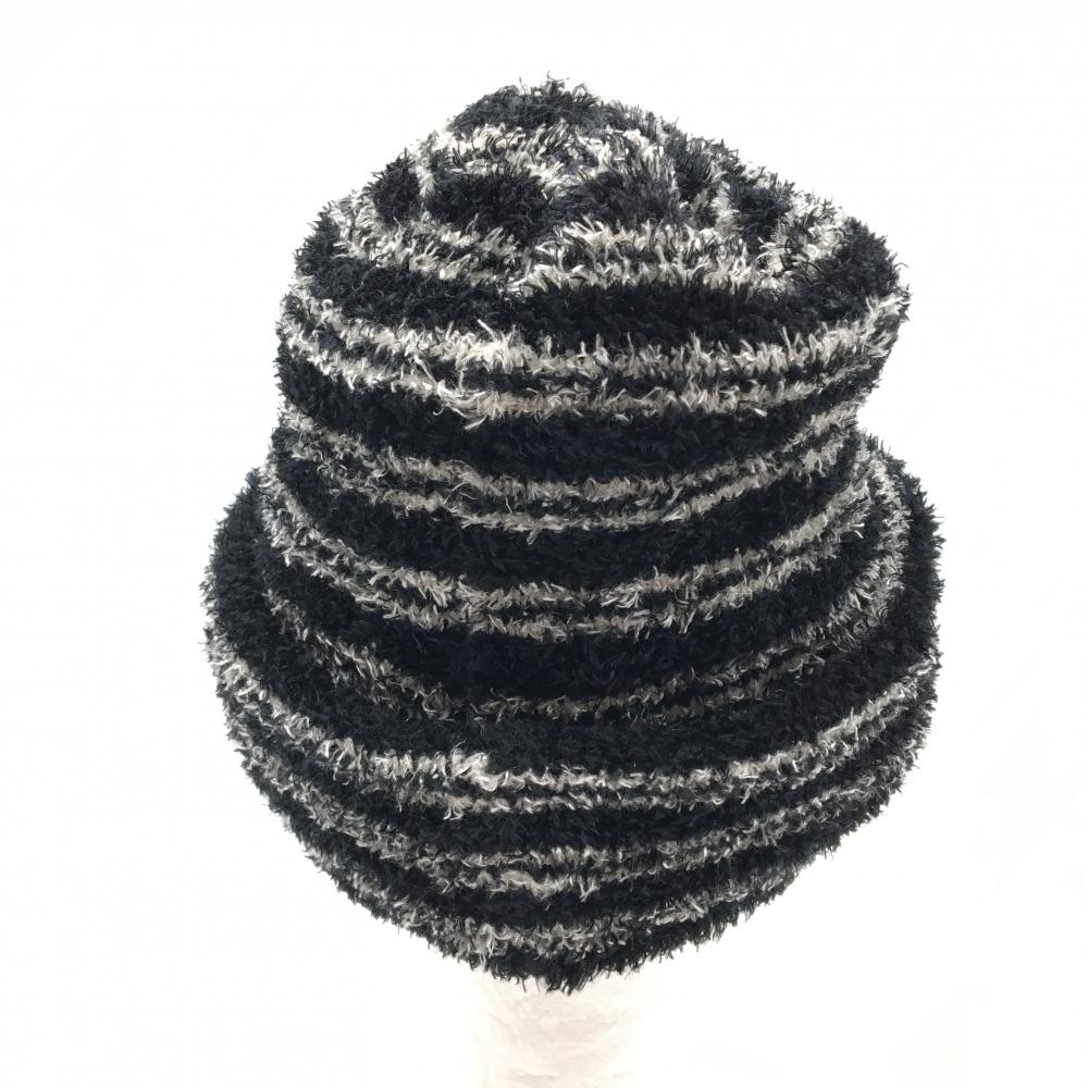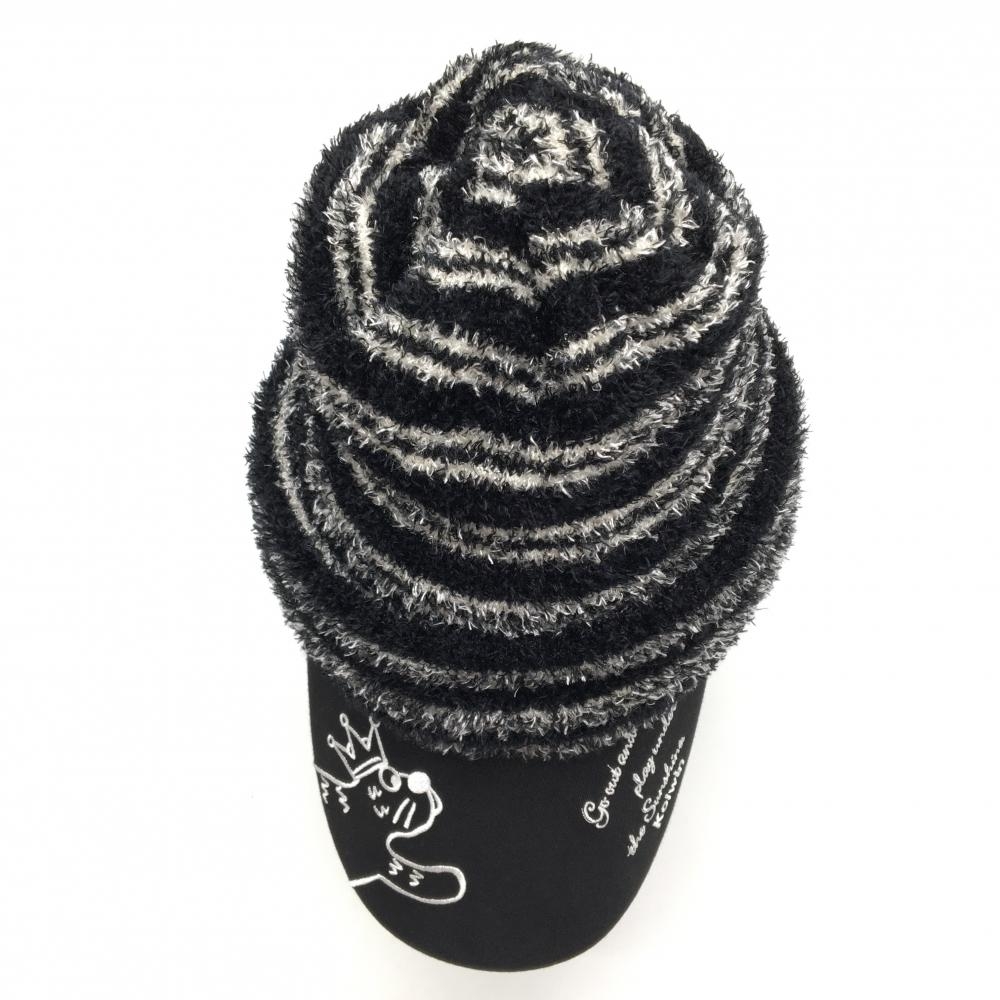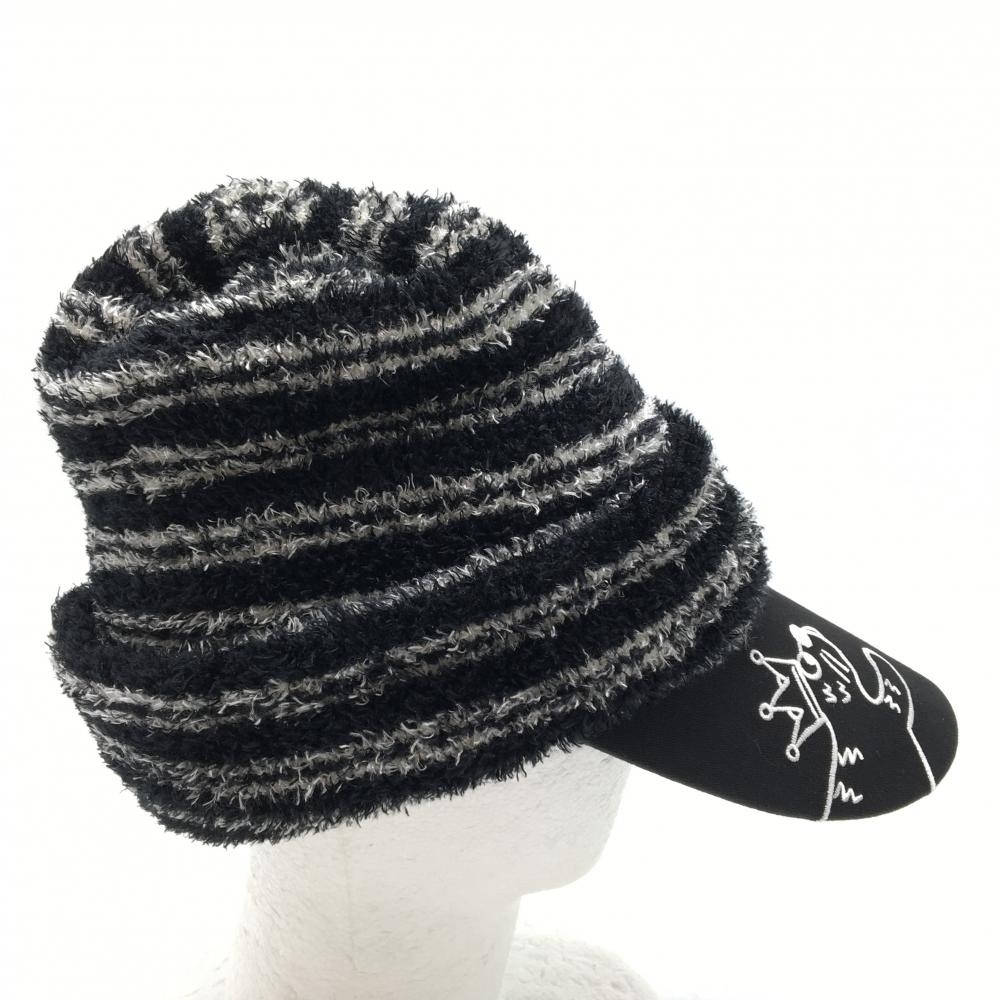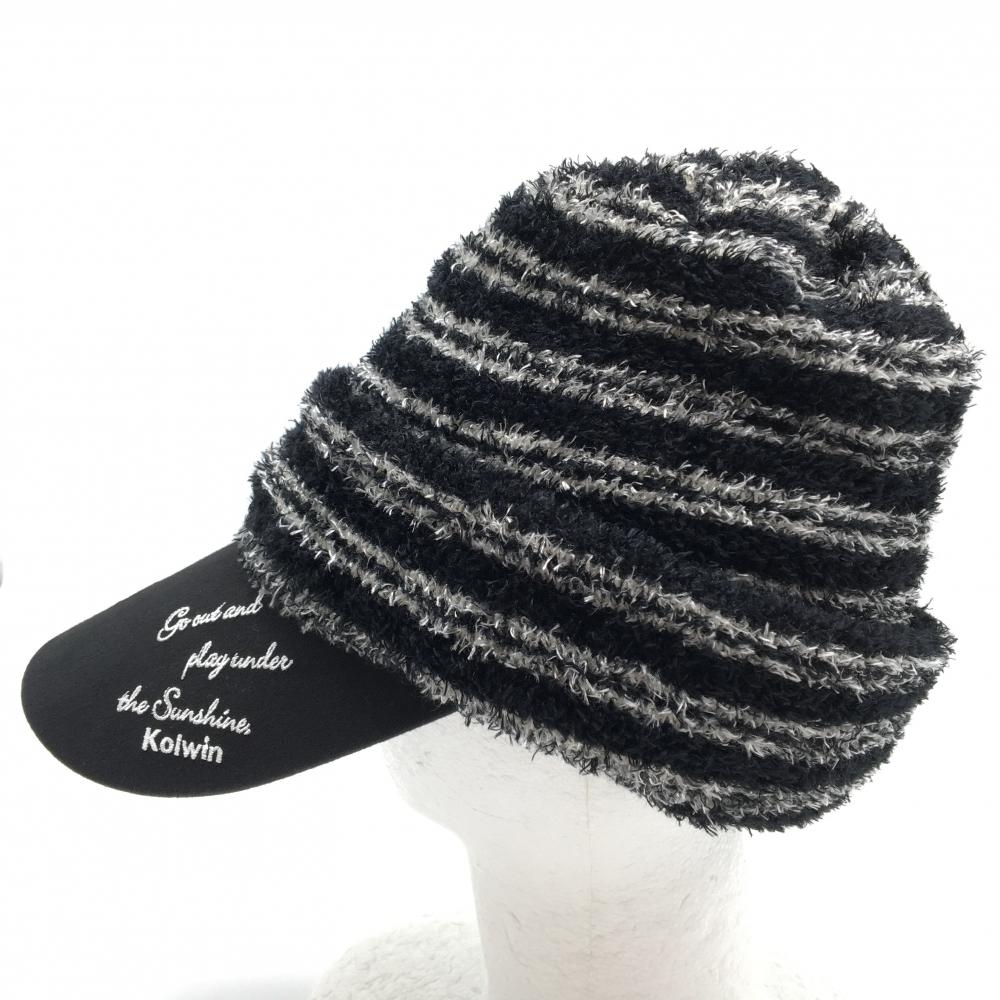 【美品】コルウィン つば付ニット帽 黒×白 ボーダー レディース ゴルフウェア Kolwin