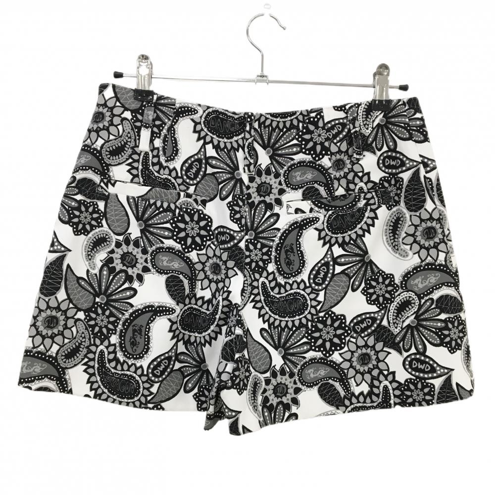 【超美品】ダンスウィズドラゴン キュロットスカート 白×黒 ペイズリー柄 レディース 3(L) ゴルフウェア Dance With Dragon