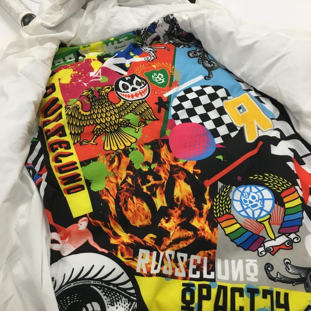 ラッセルノ 2WAYダウンジャケット 白 内側一部総柄 ルチャマスク 袖着脱可 大きいサイズ メンズ 7(2XL) ゴルフウェア RUSSELUNO