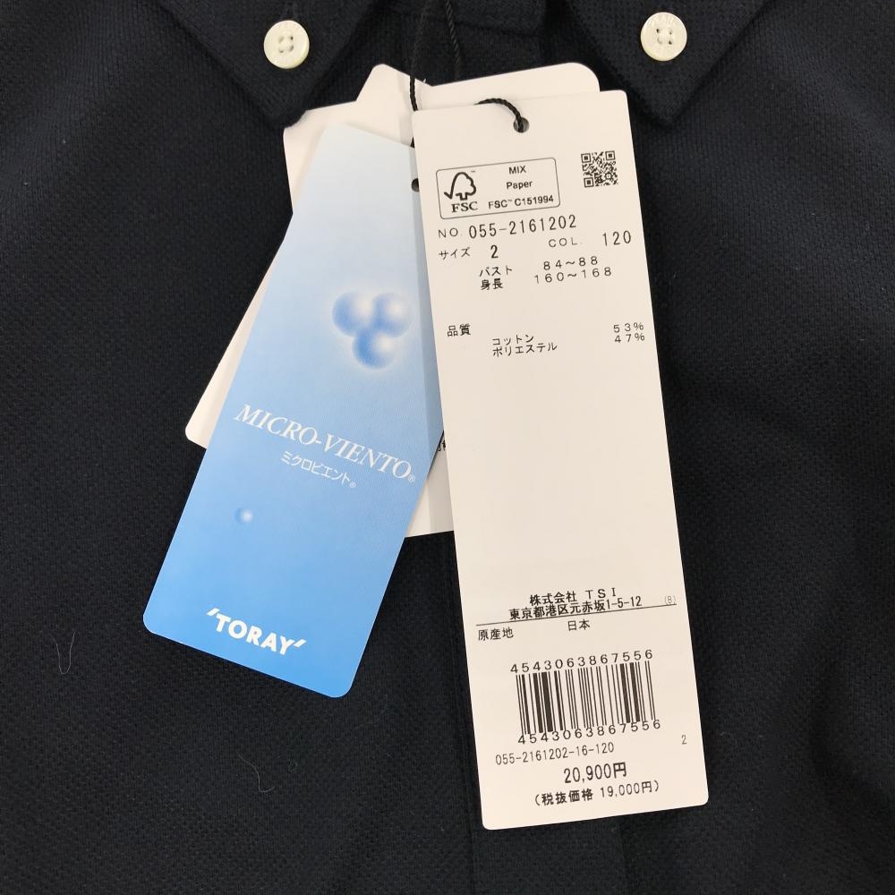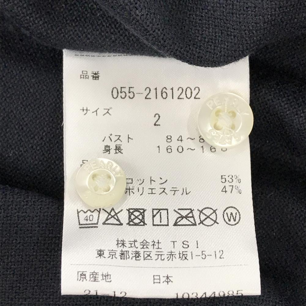 【新品】パーリーゲイツ 長袖ポロシャツ ネイビー ボタンダウン 袖ロゴ レディース 2(L) ゴルフウェア PEARLY GATES