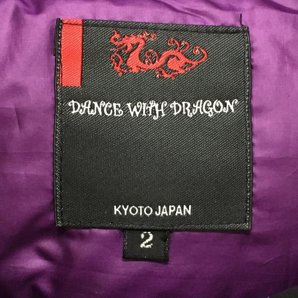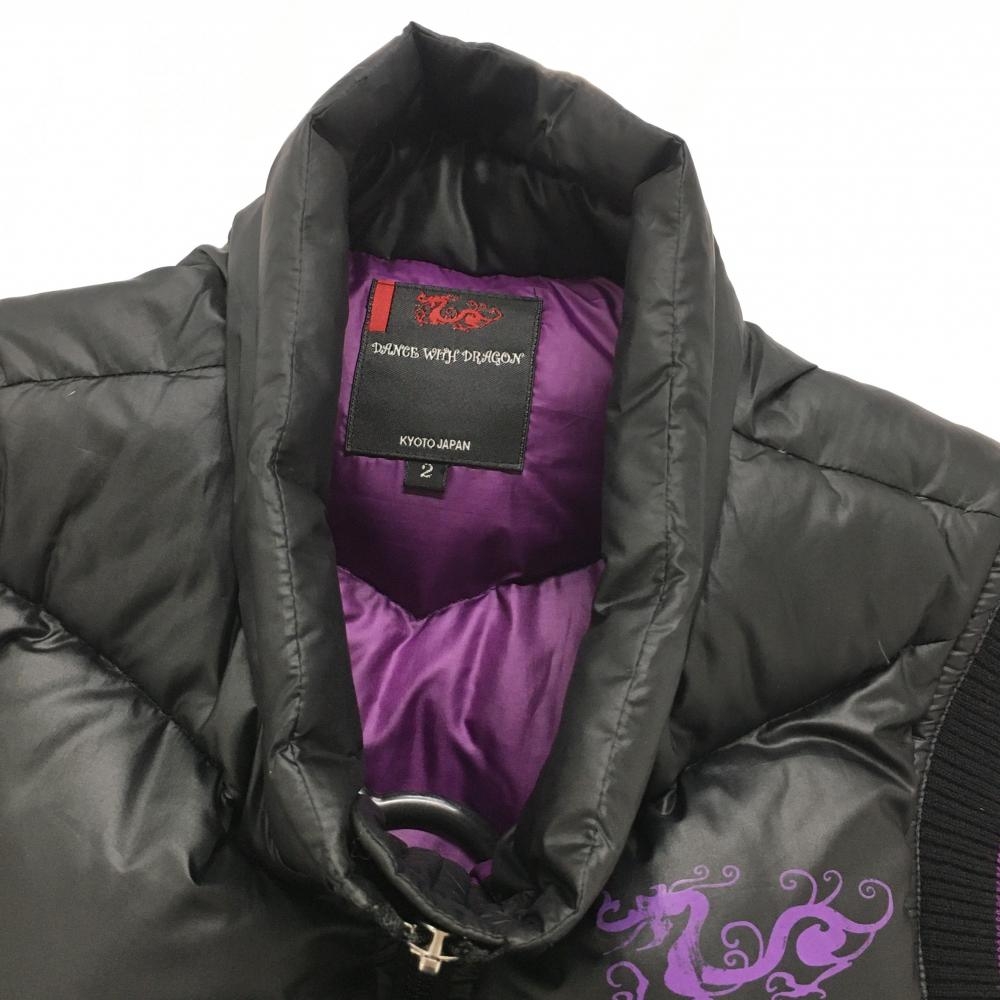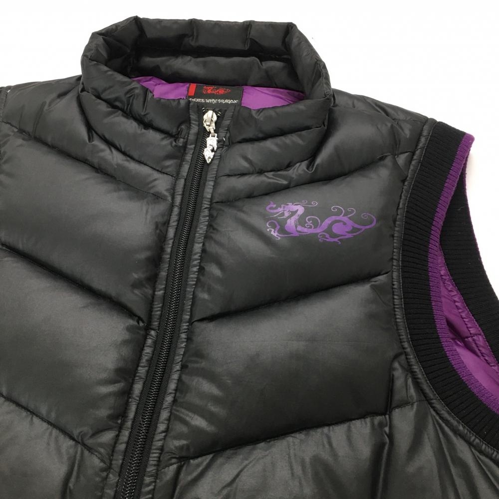 ダンスウィズドラゴン ダウンベスト 黒×パープル ロゴプリント メンズ 2(M) ゴルフウェア Dance With Dragon