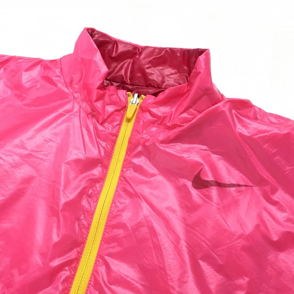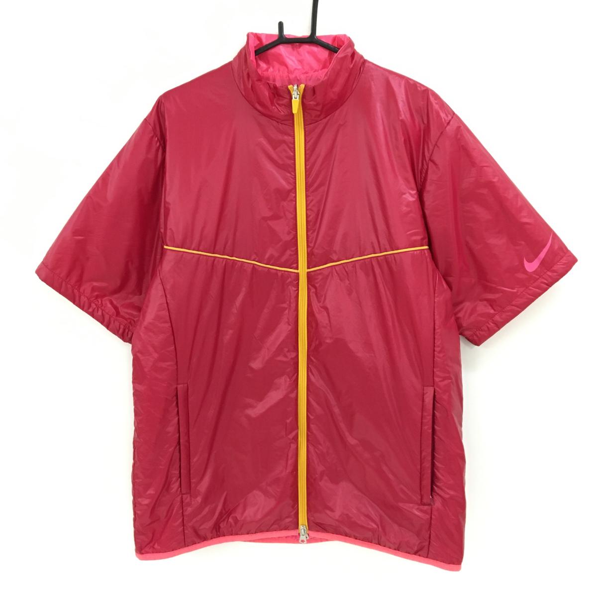 【美品】ナイキゴルフ 半袖中綿リバーシブルジャケット ピンク×イエロー メンズ XXL ゴルフウェア 大きいサイズ NIKE