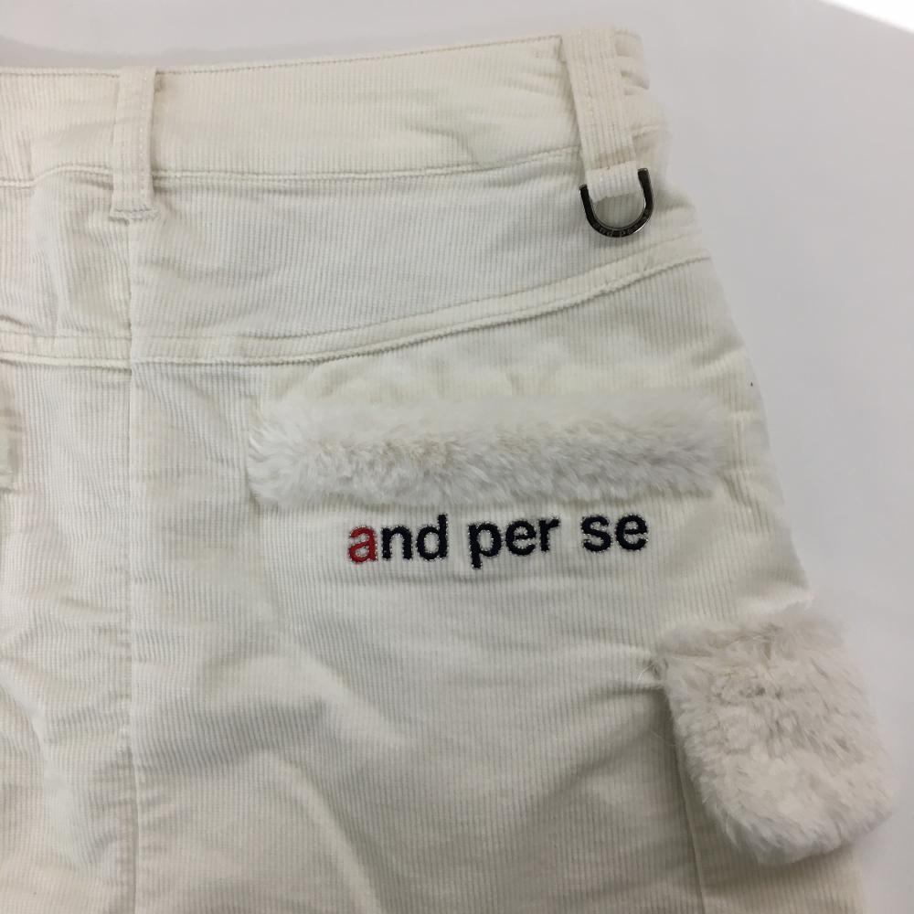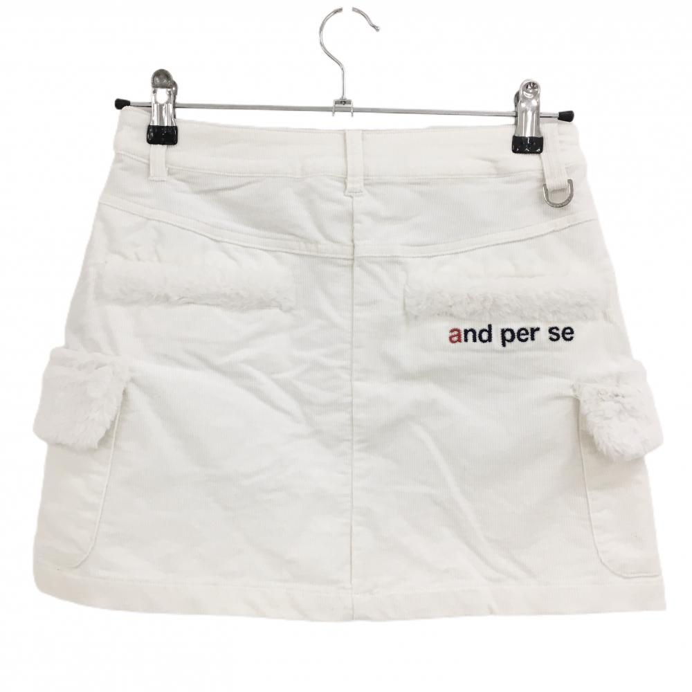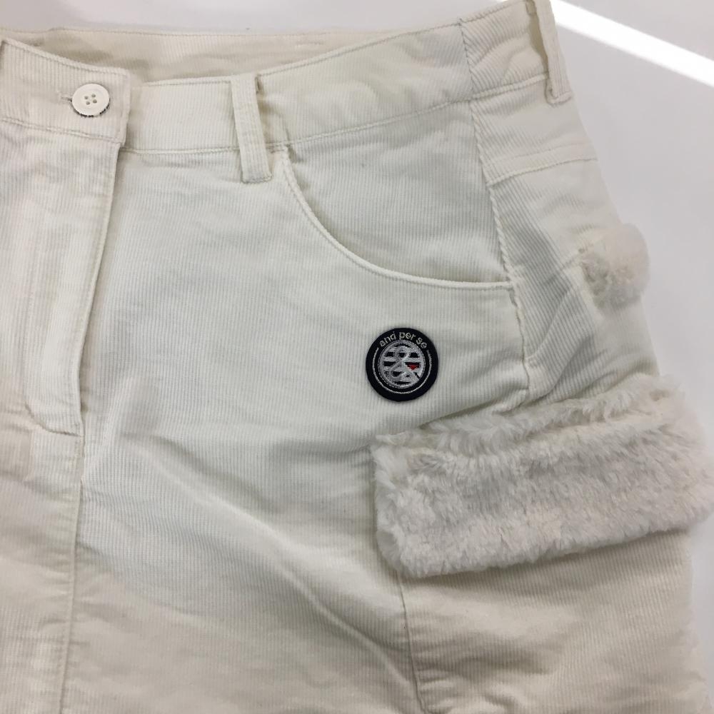 【超美品】アンパスィ コーデュロイスカート 白 一部ファー ロゴワッペン ストレッチ レディース S ゴルフウェア and per se