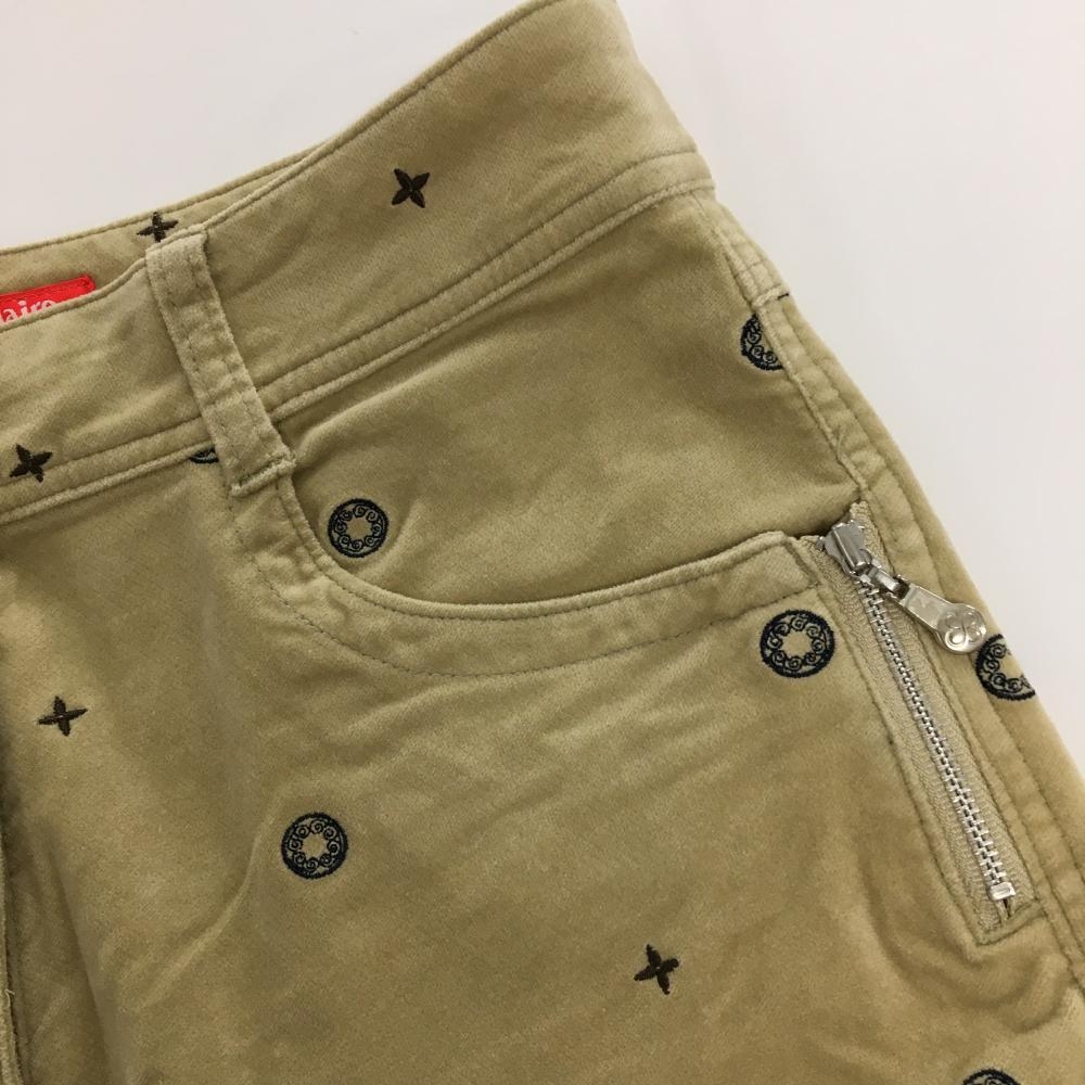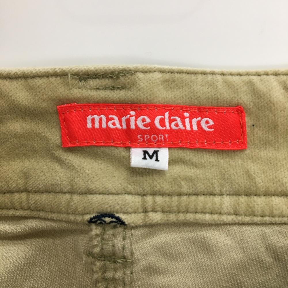 マリクレールスポール パンツ ベージュ×ブラウン 刺しゅう総柄 表微起毛 レディース M ゴルフウェア marie claire