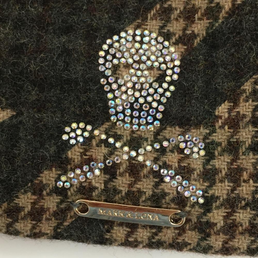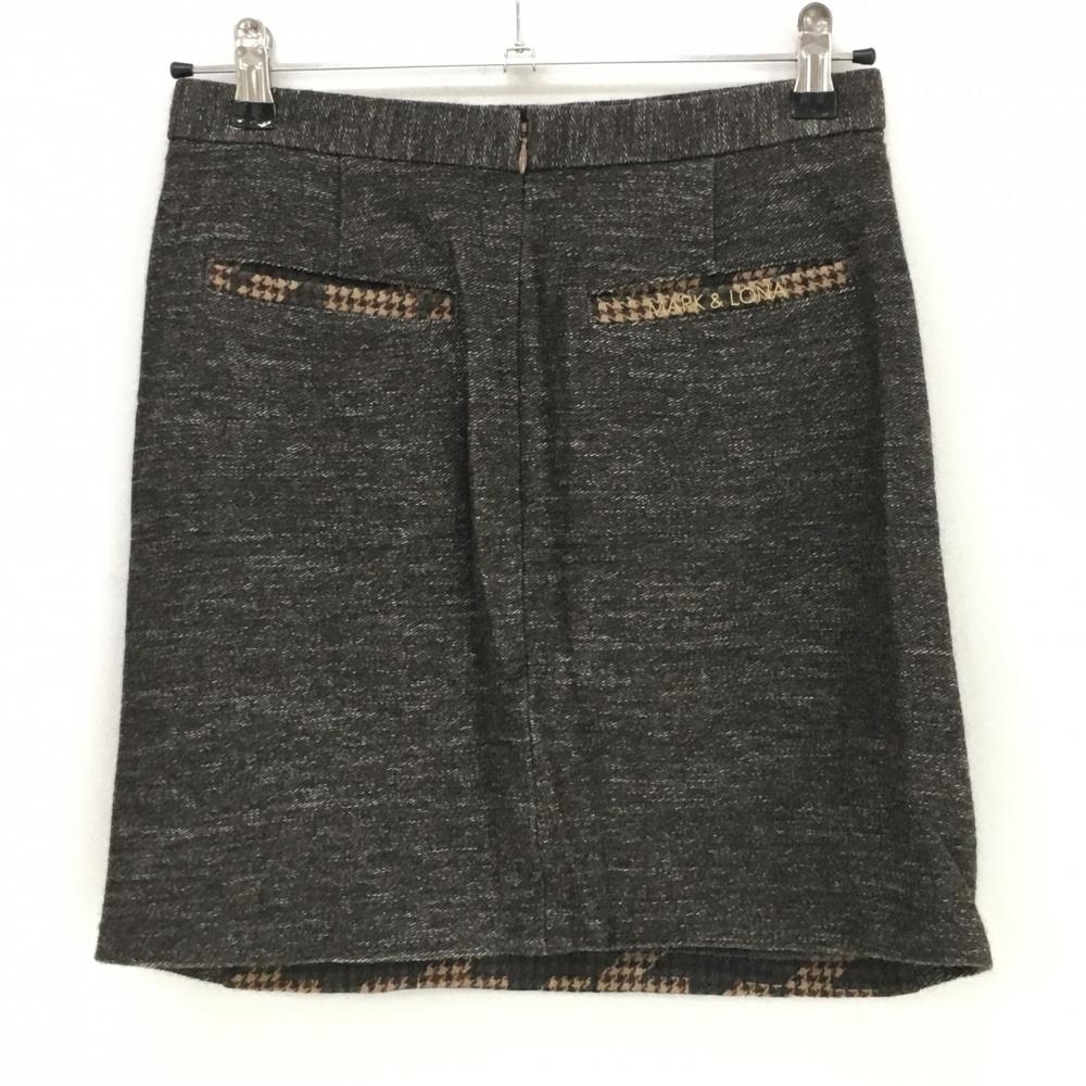 【美品】マークアンドロナ ニットスカートベージュ×ブラウン 前面千鳥格子 ウール混 レディース M ゴルフウェア MARK&LONA