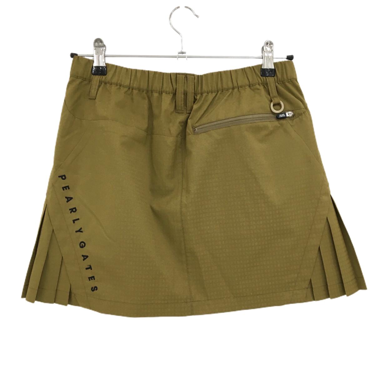 【超美品】パーリーゲイツ スカート カーキ系 格子地模様 蓄熱裏地 サイドプリーツ レディース 0(S) ゴルフウェア PEARLY GATES
