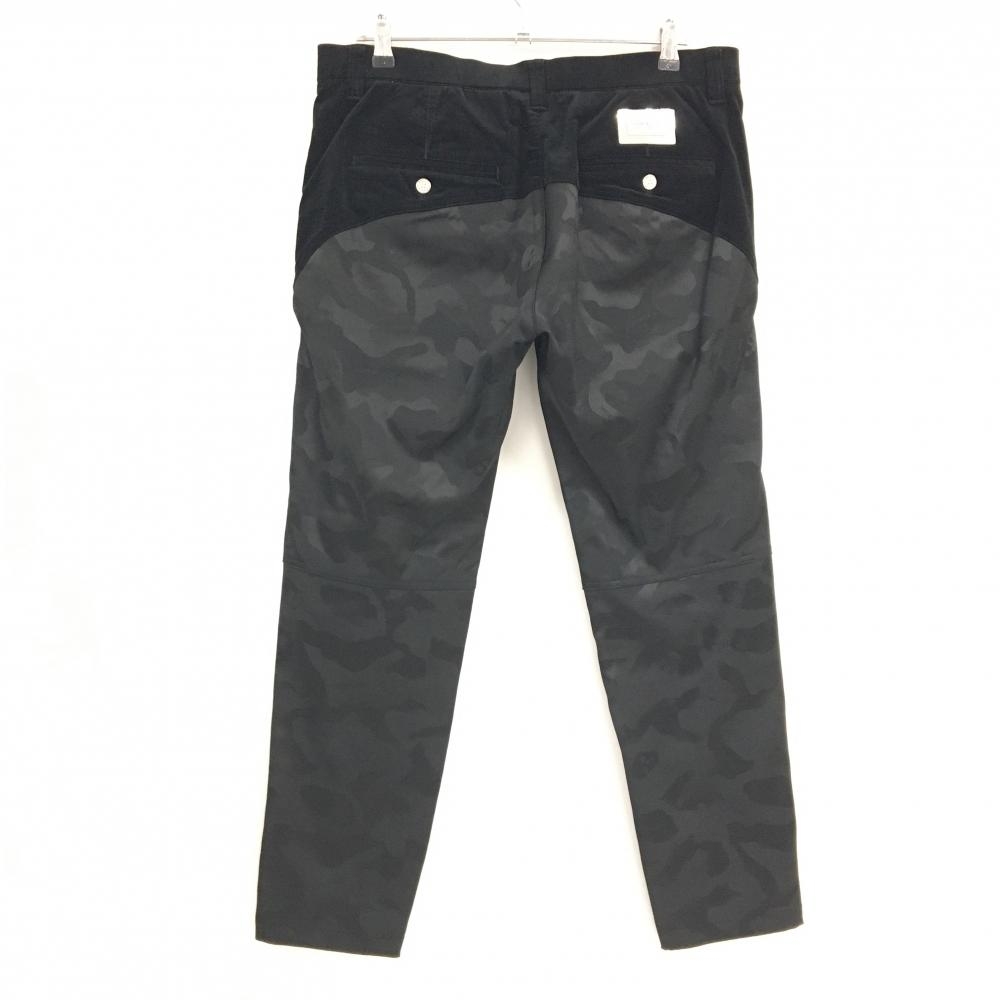 【美品】マークアンドロナ パンツ 黒系 前コーデュロイ 後ろカモフラ ストレッチ メンズ 50(XL) ゴルフウェア MARK&LONA