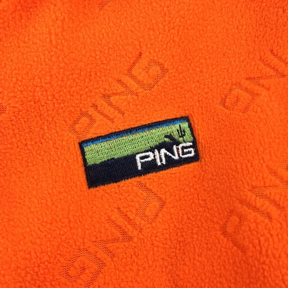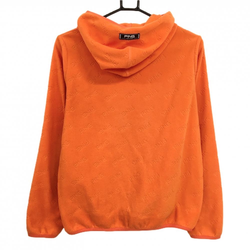 ピン パーカー オレンジ ロゴ総柄 フリース地 レディース S ゴルフウェア PING