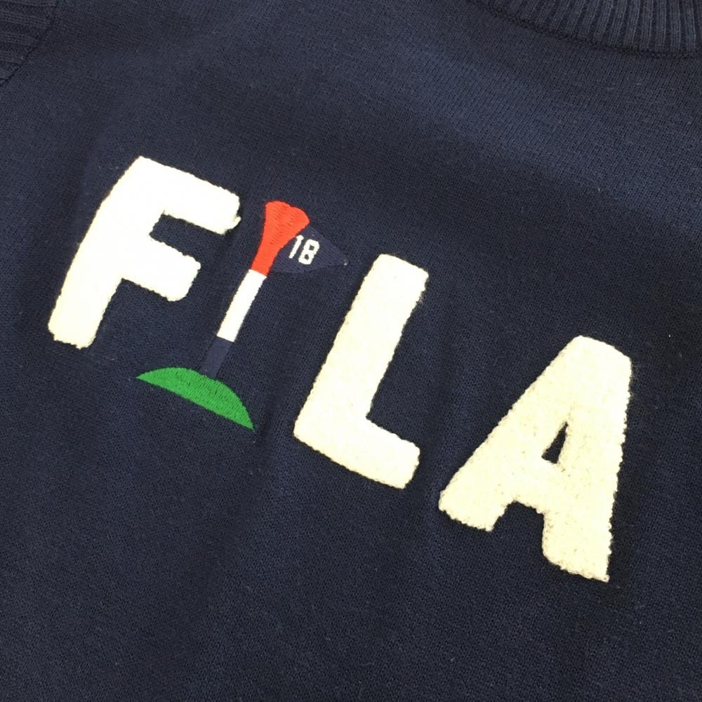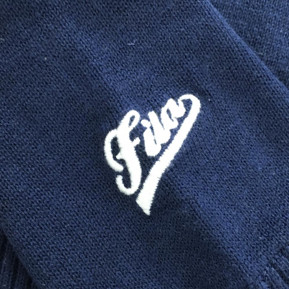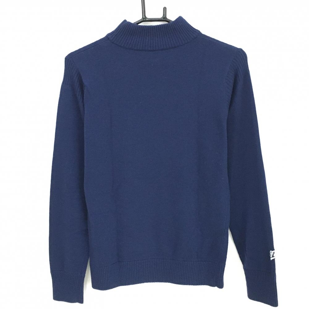 フィラゴルフ ハイネックセーター ネイビー×白 パイル地ロゴ ピン ウール混 ニット レディース L ゴルフウェア FILA GOLF