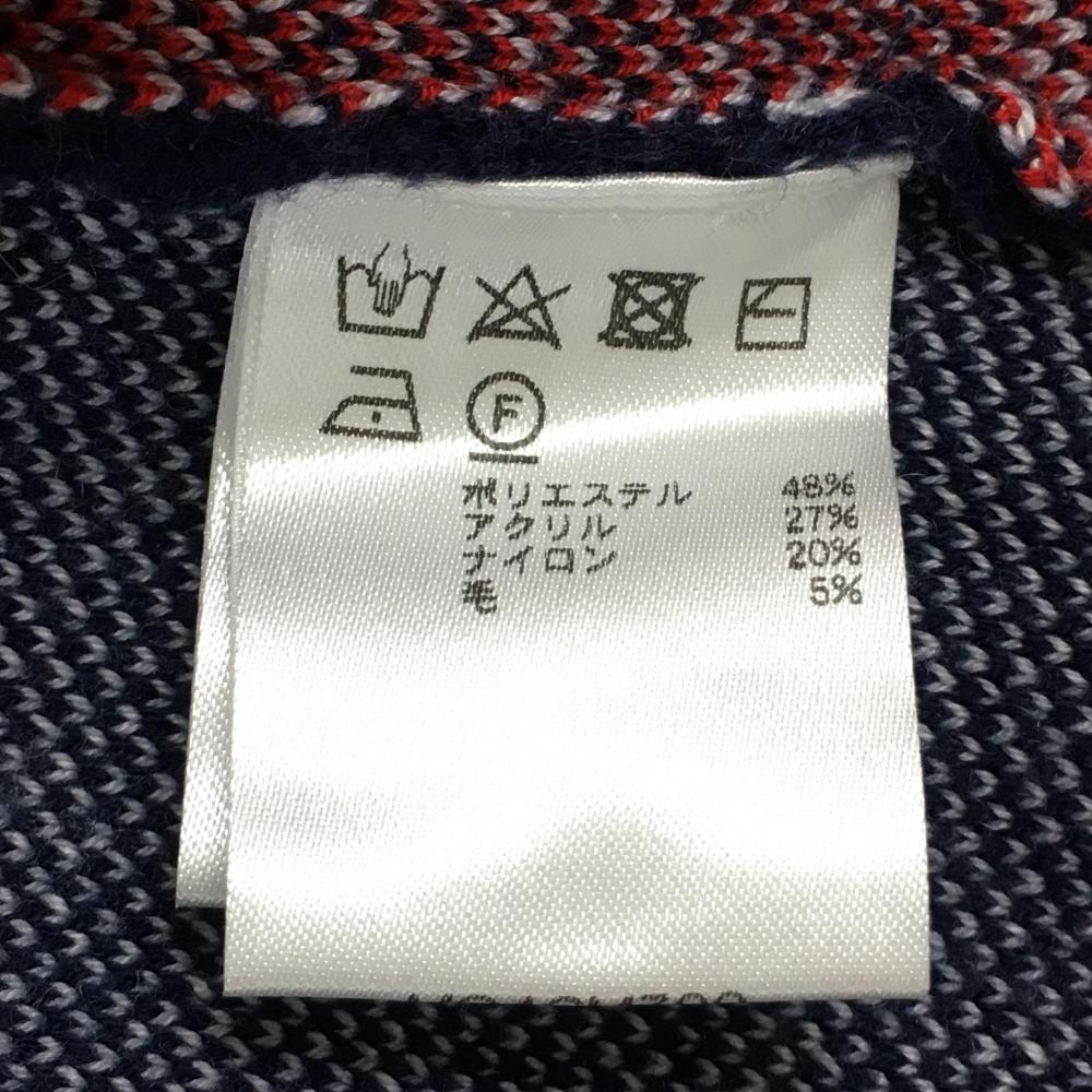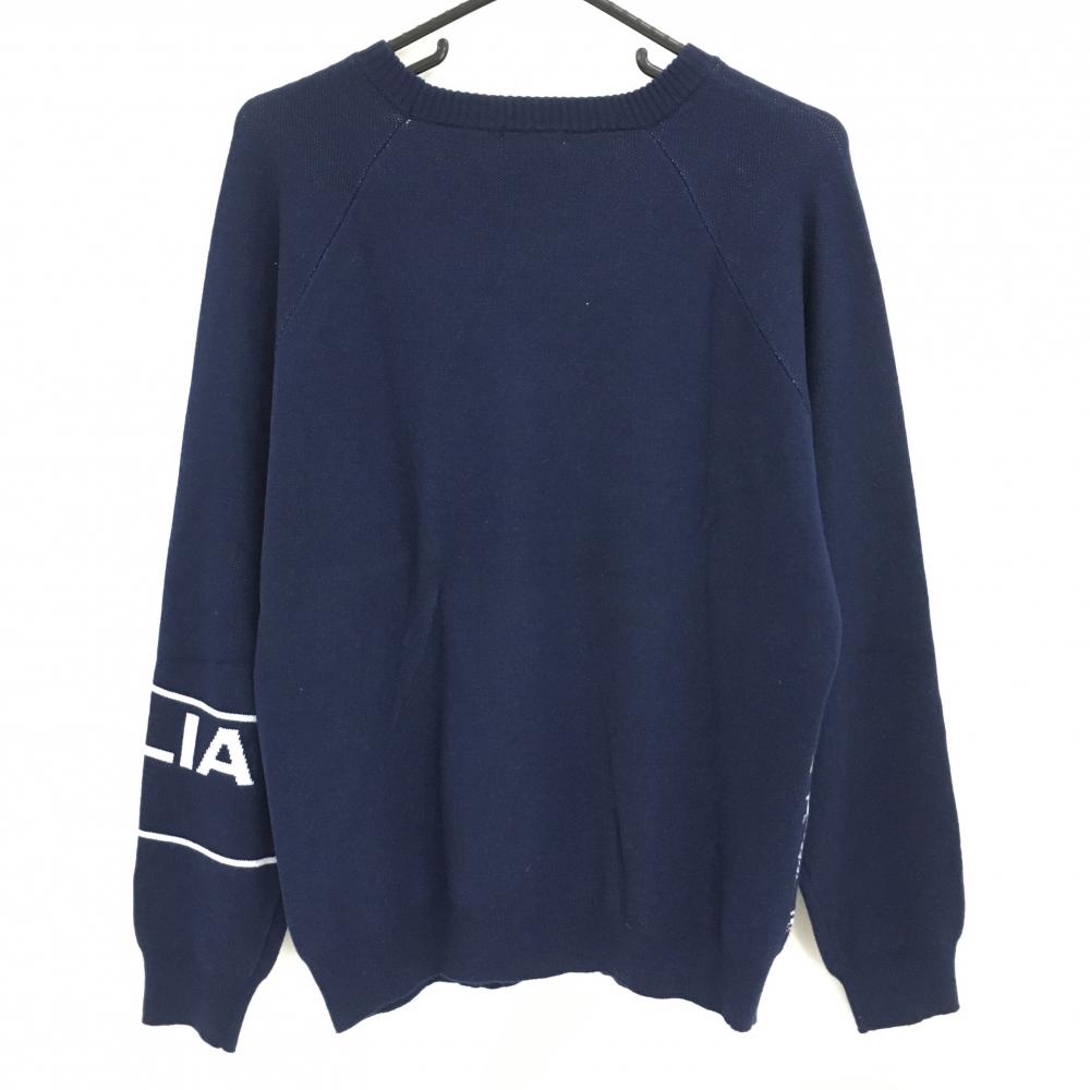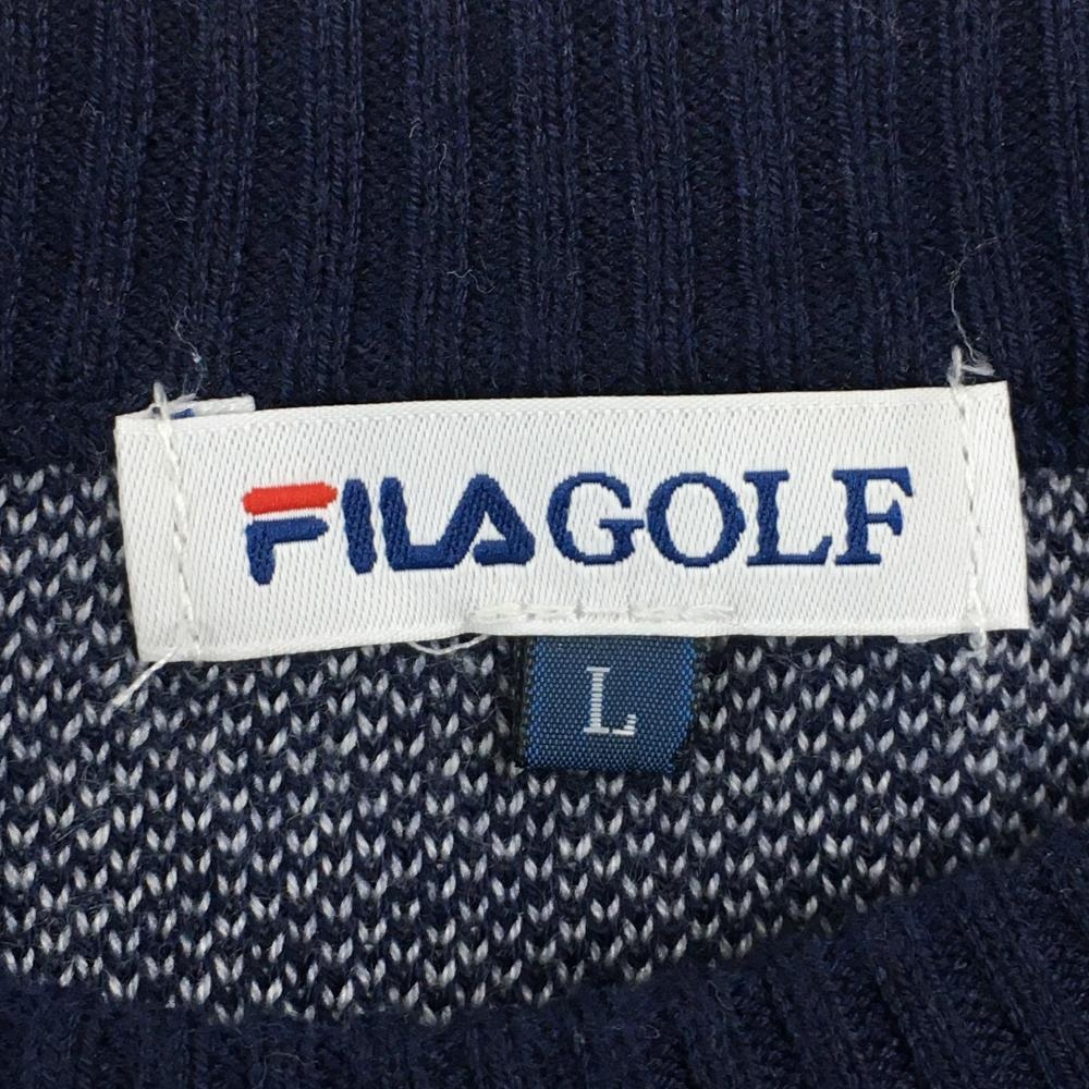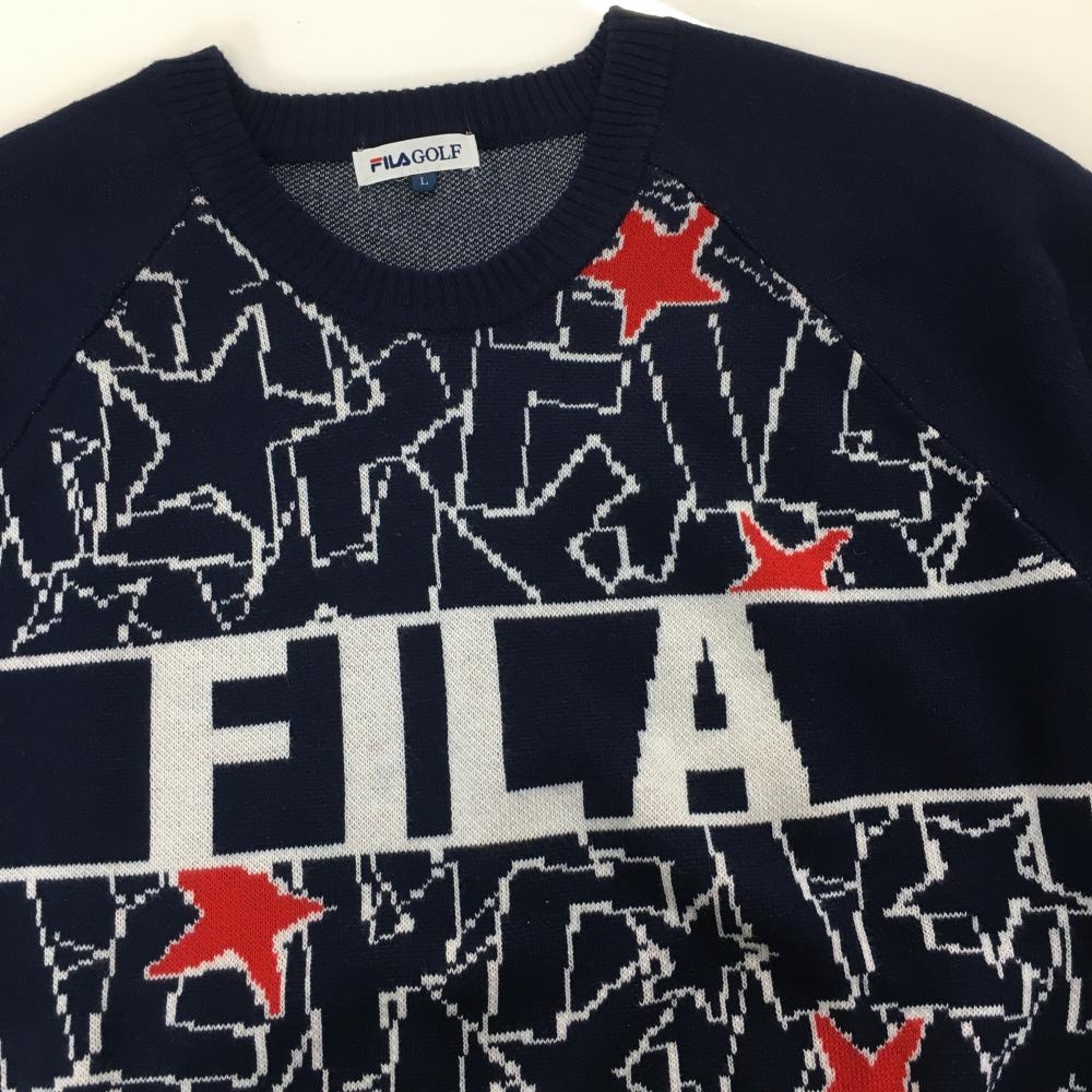 【美品】フィラゴルフ セーター ネイビー×白 前身頃星柄 ビッグロゴ ウール混 ニット メンズ L ゴルフウェア FILA GOLF