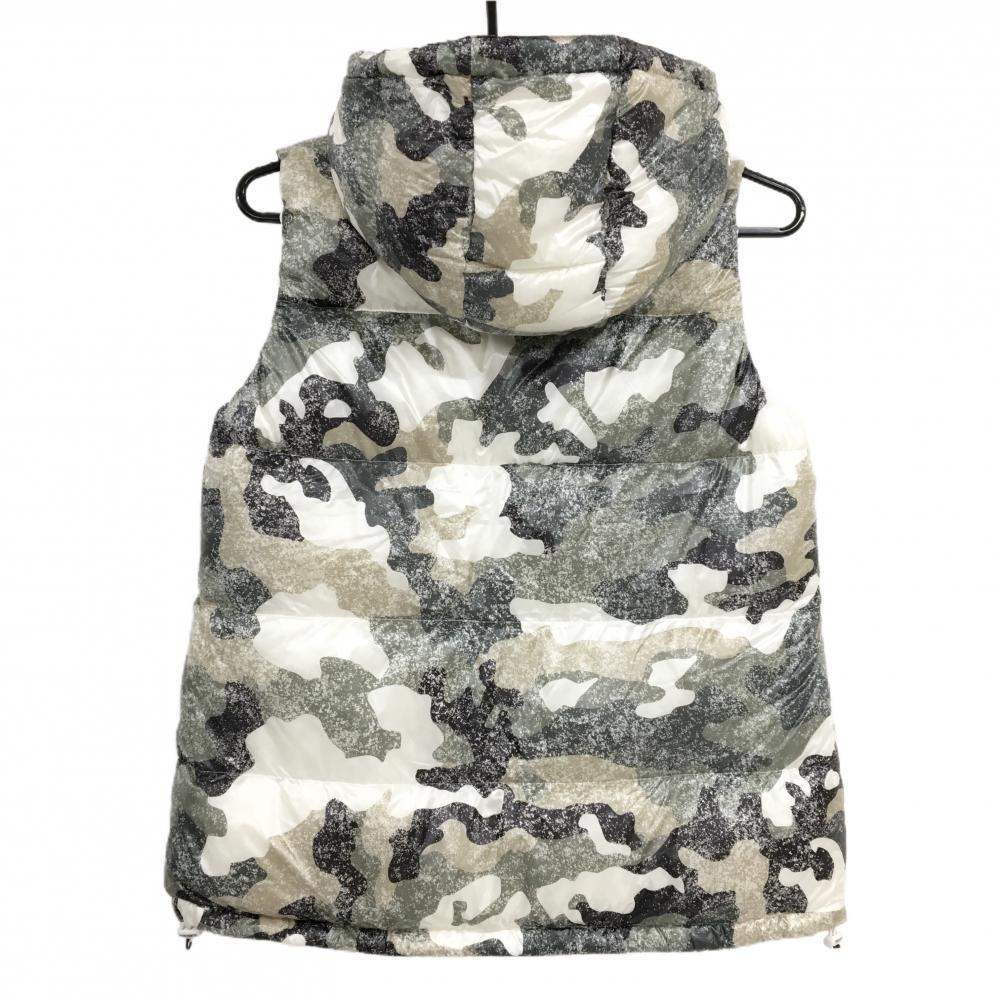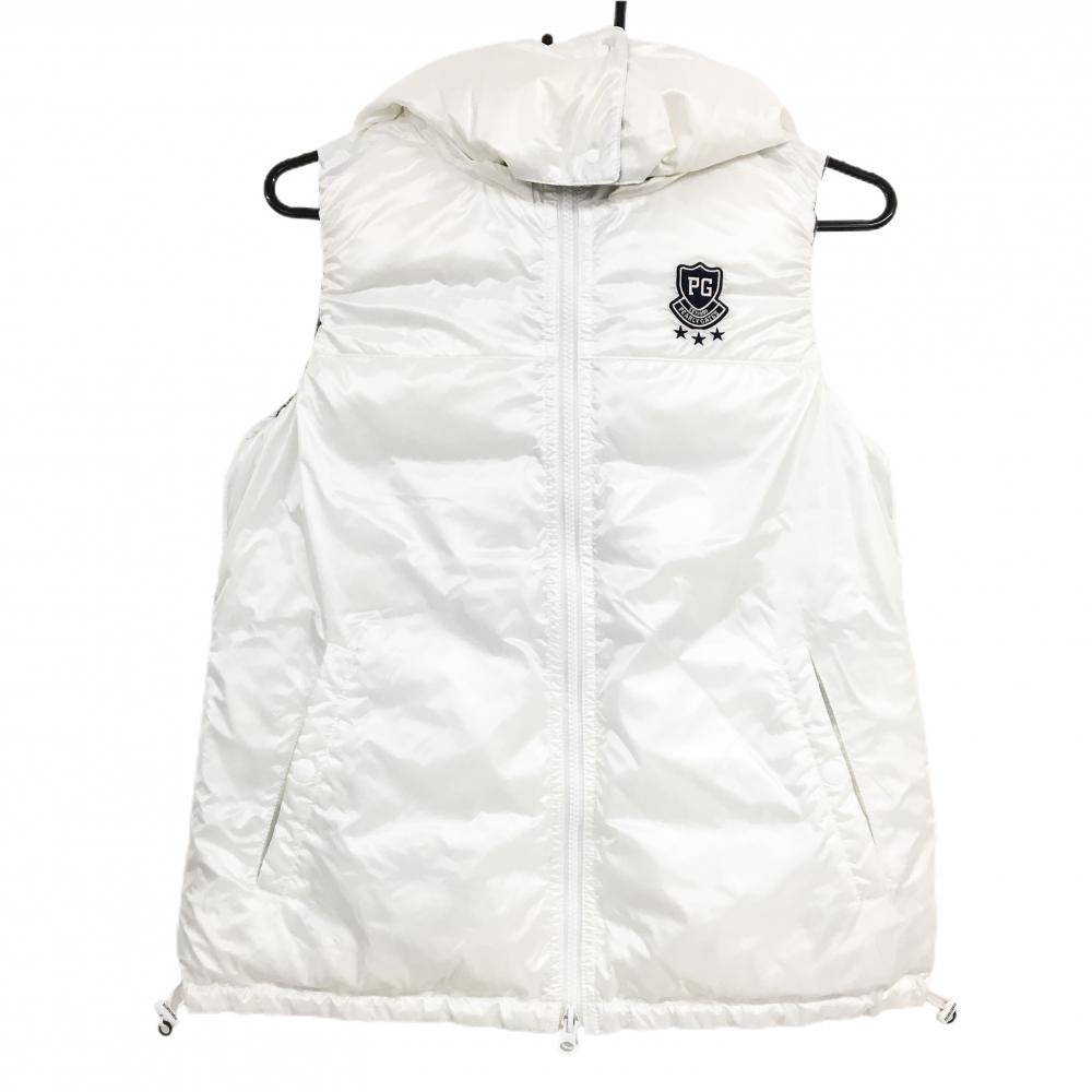 【超美品】パーリーゲイツ 2WAYリバーシブルダウンベスト 白×カーキ かすれカモフラ柄 迷彩 レディース 1(M) ゴルフウェア PEARLY GATES
