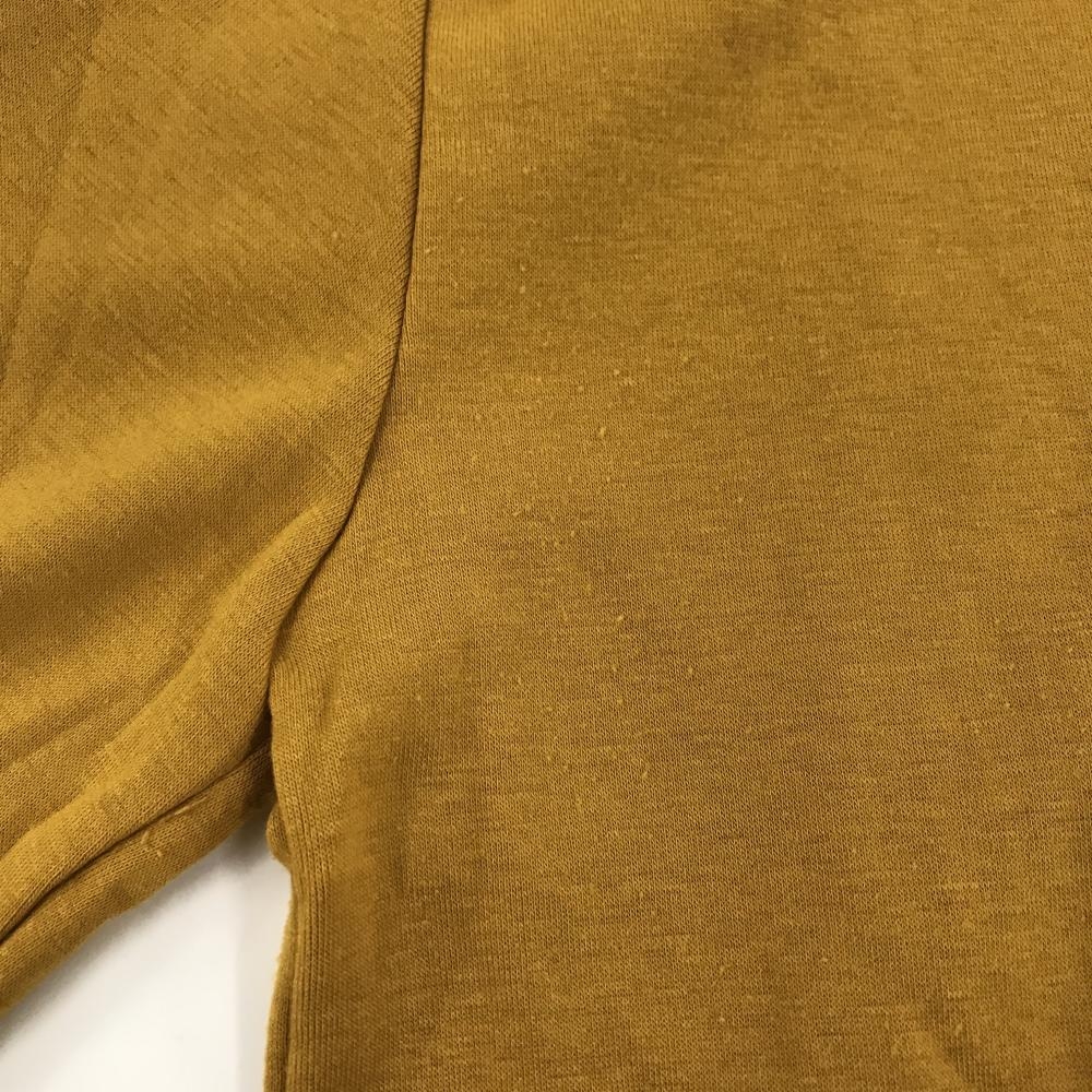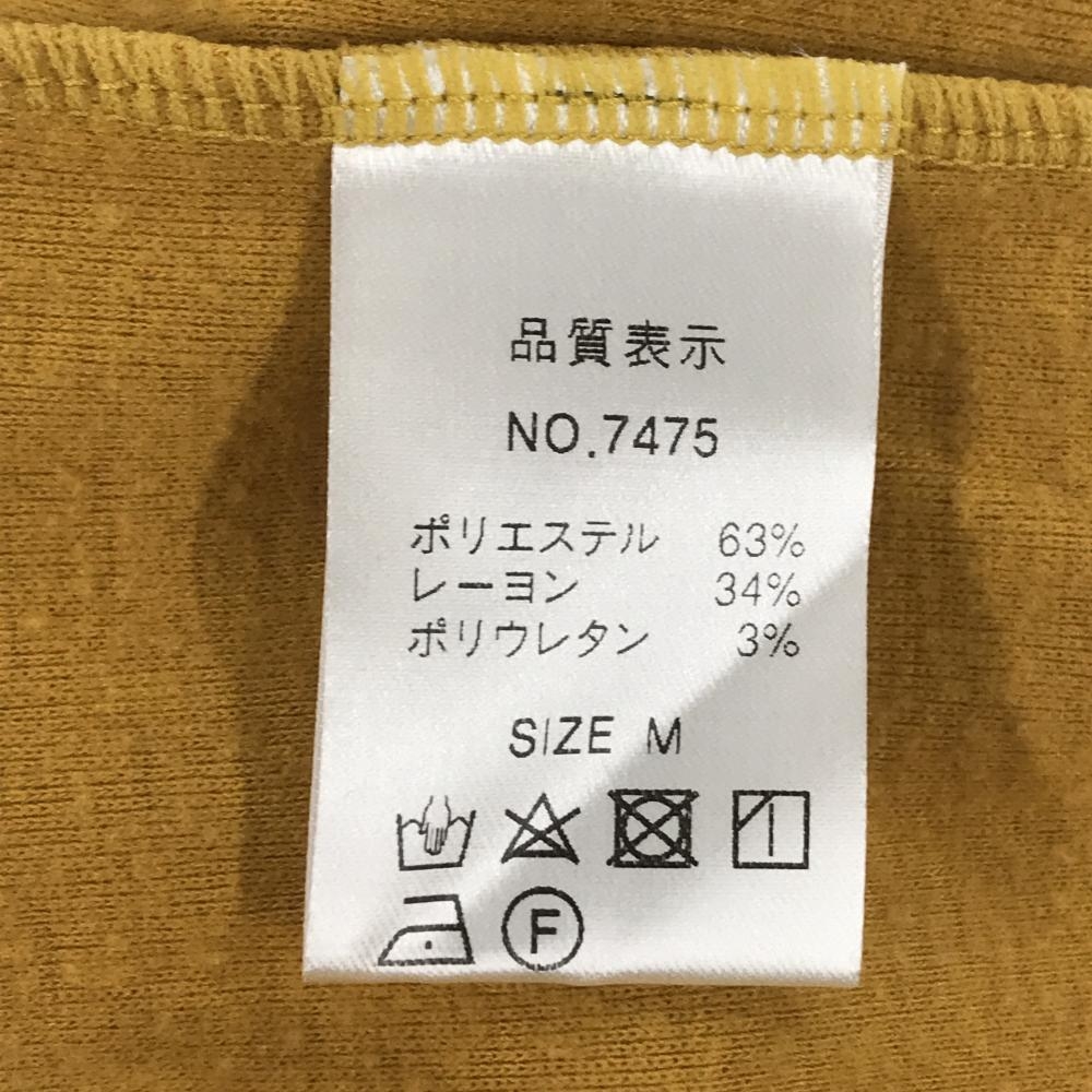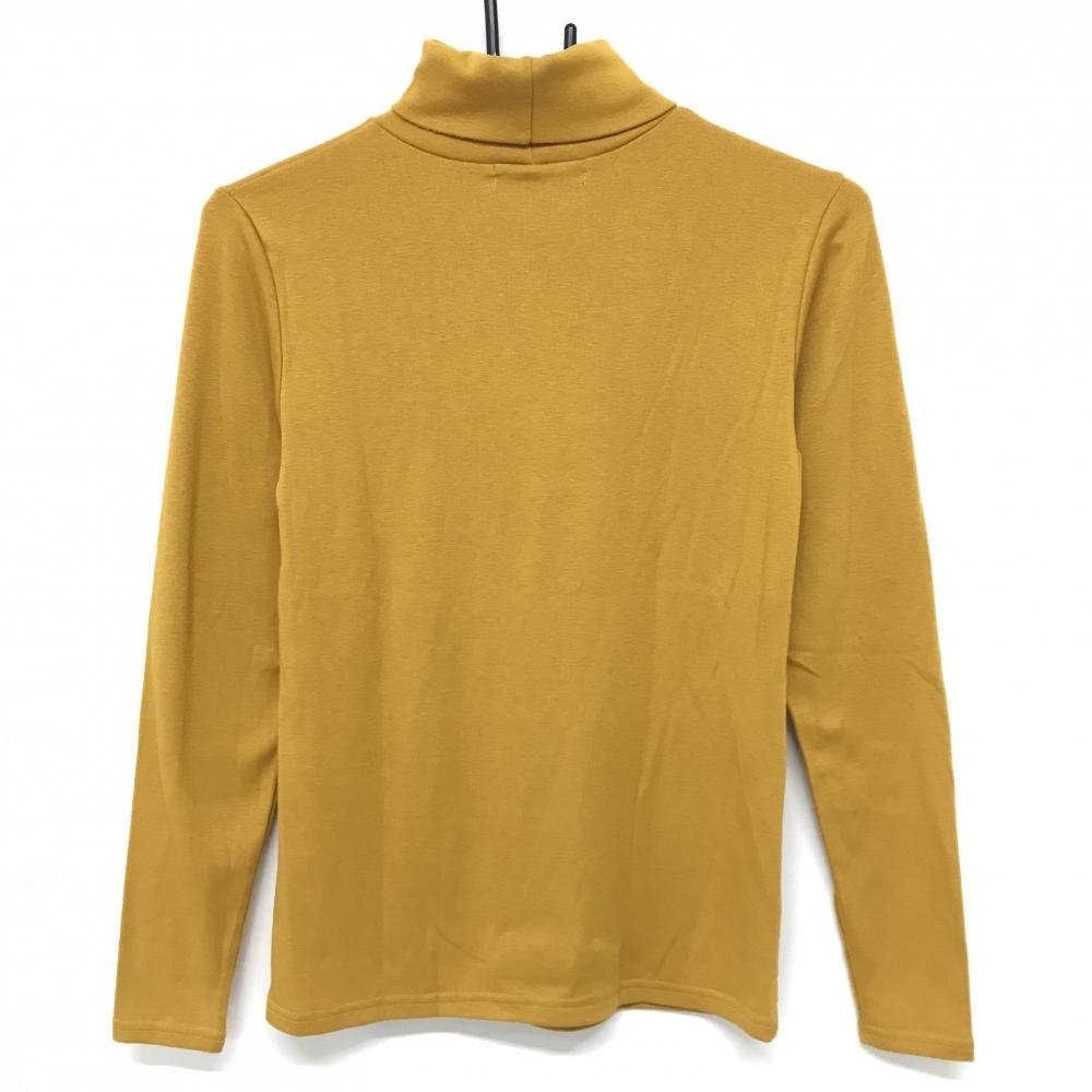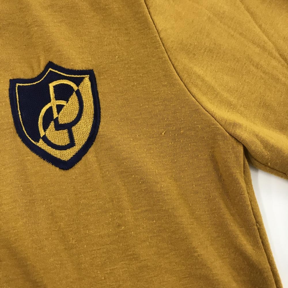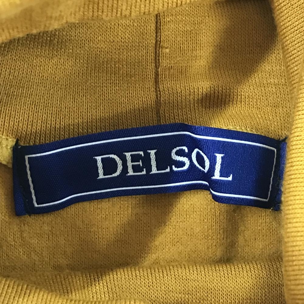 【美品】デルソル 長袖ハイネックシャツ マスタードイエロー×ネイビー 胸元ロゴ レディース M ゴルフウェア DELSOL