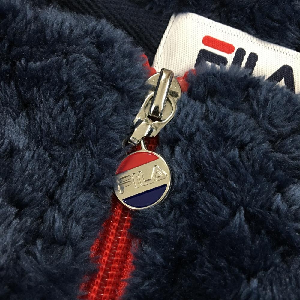【超美品】フィラ ボアブルゾン ネイビー×レッド ハーフジップ 切替 腹部ポケット レディース L ゴルフウェア FILA GOLF