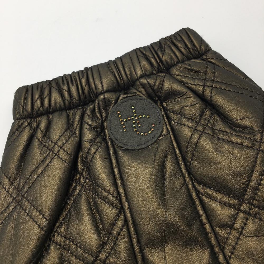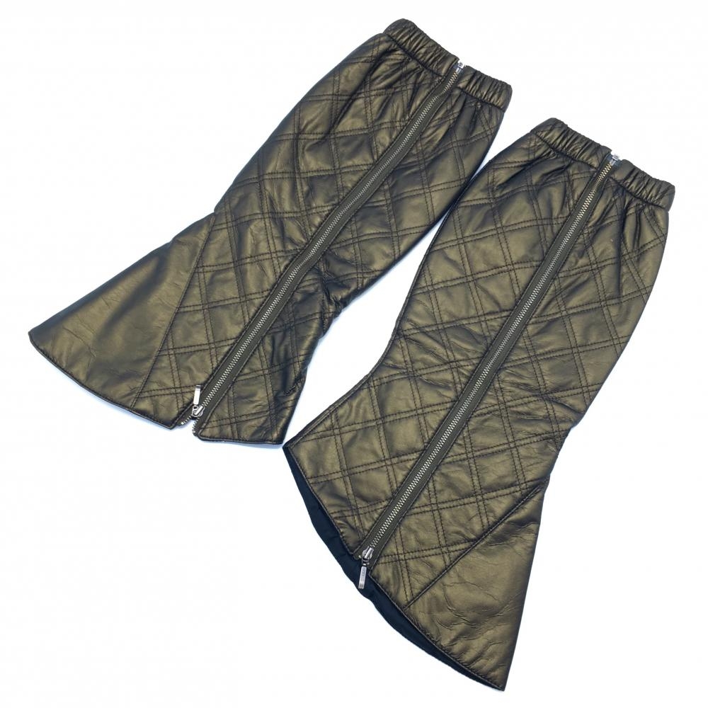 ヒールクリーク 中綿レッグウォーマー ゴールド系 合皮 ロゴワッペン レディース ゴルフウェア Heal Creek