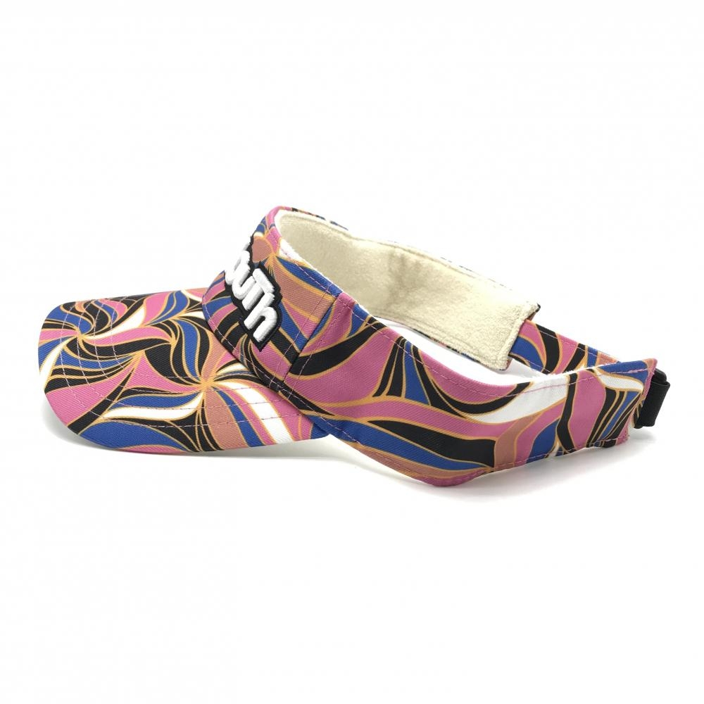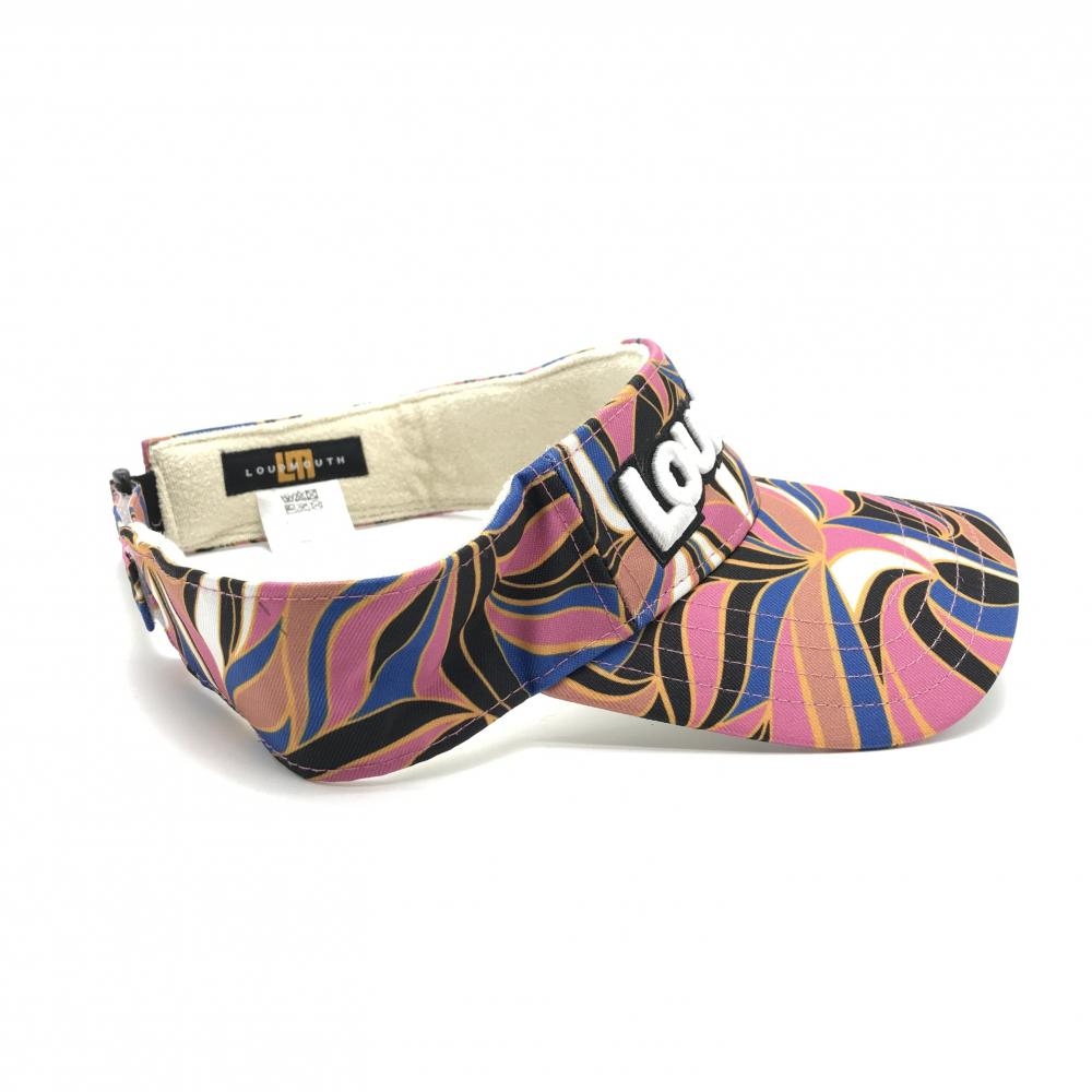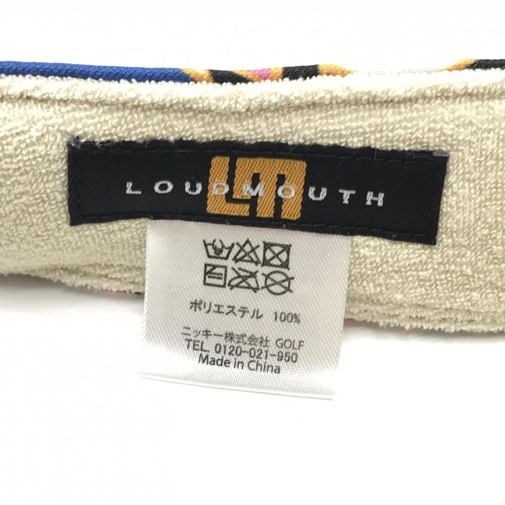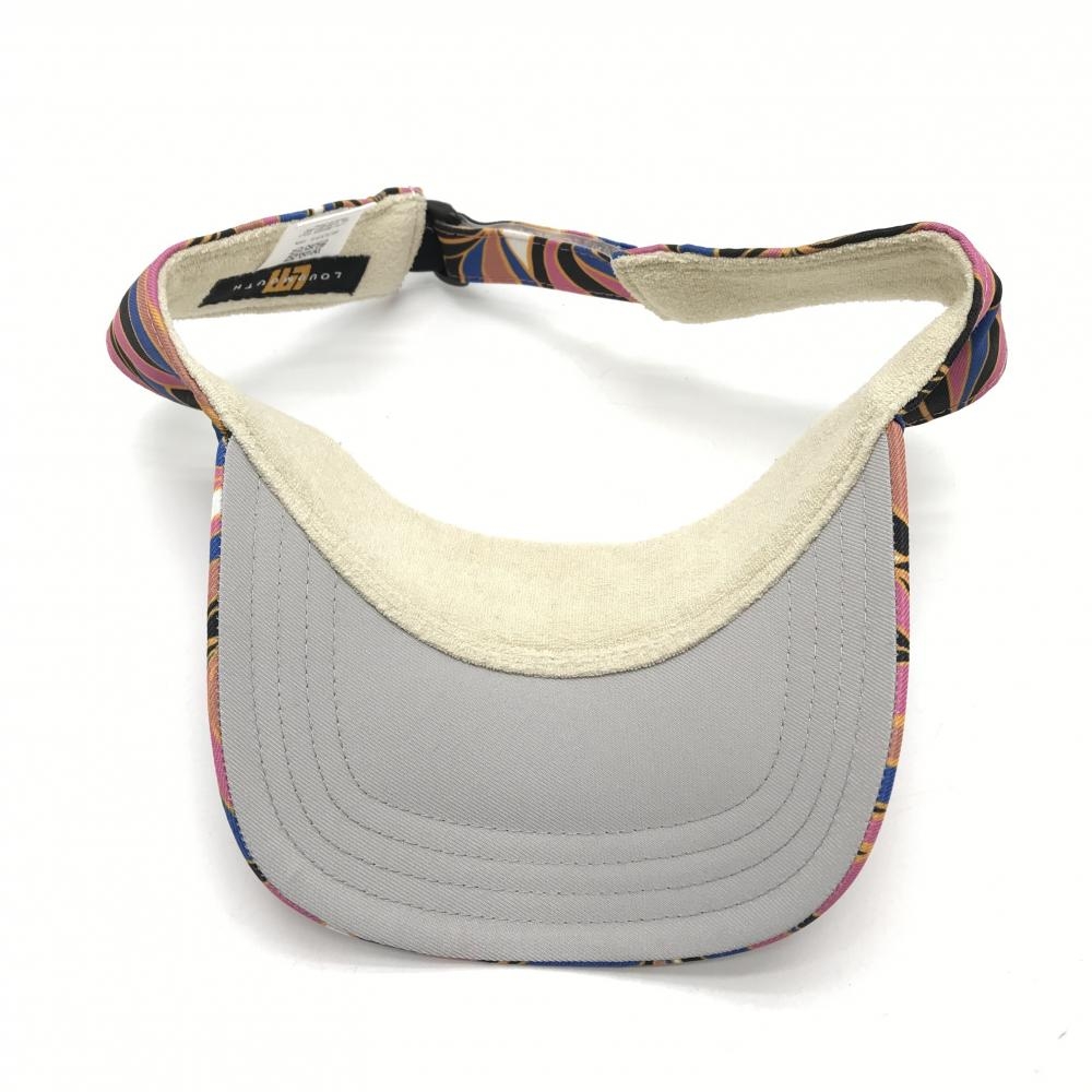 【超美品】ラウドマウス サンバイザー ブラウン×ブルー×ピンク アプリコットブランディー 総柄 ゴルフウェア LOUDMOUTH