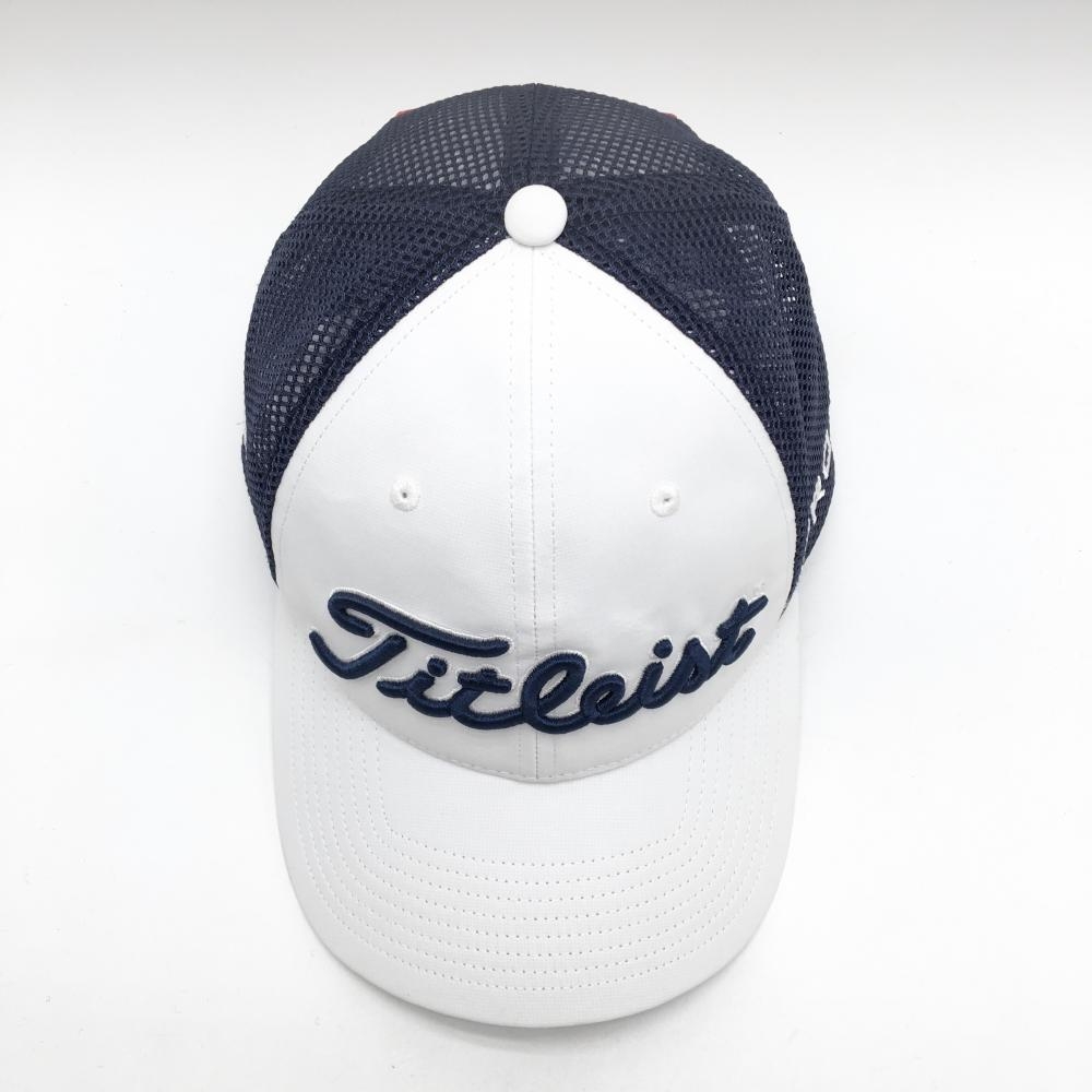 【超美品】タイトリスト メッシュキャップ 白×ネイビー 立体ロゴ刺しゅう フリー(57~59cm) ゴルフウェア TITLEIST