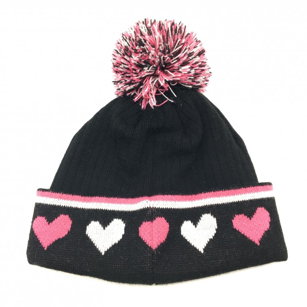 【超美品】スリクソン ニット帽 黒×ピンク ボンボン付き ハート レディース ゴルフウェア SRIXON