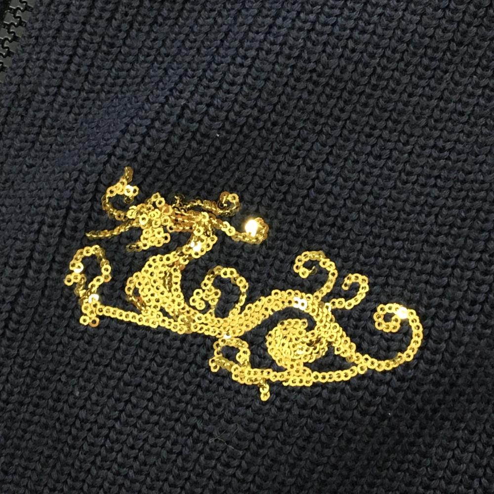 【超美品】ダンスウィズドラゴン 中綿ニットベスト ネイビー 背面総柄 ペイズリー レディース 3(L) ゴルフウェア Dance With Dragon