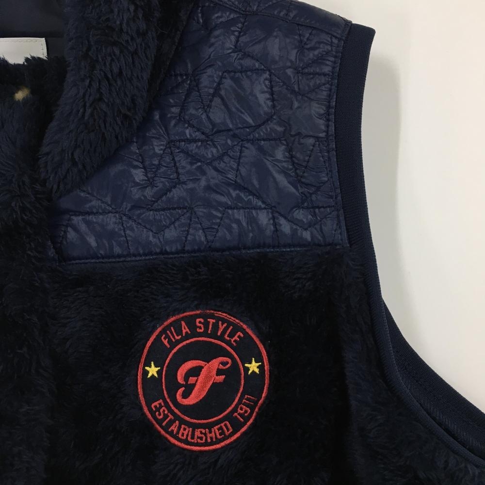 【超美品】フィラゴルフ ボアベスト ネイビー 肩中綿・星柄キルト 裏起毛 レディース LL ゴルフウェア FILA GOLF