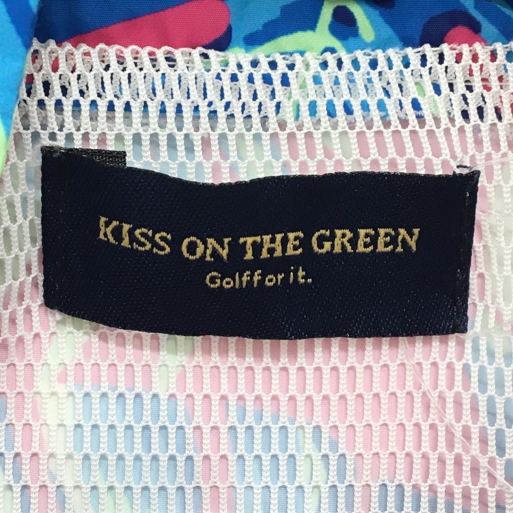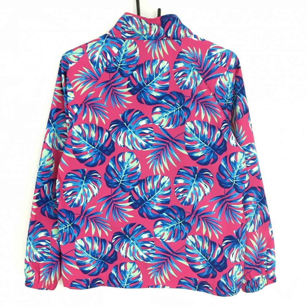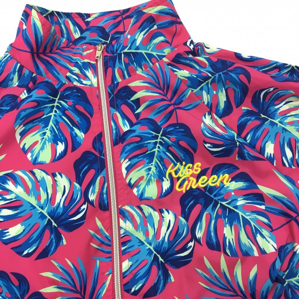 【超美品】キスオンザグリーン ジャケット ピンク×ブルー リーフ柄 メッシュ裏地 レディース 2(M) ゴルフウェア kiss on the green