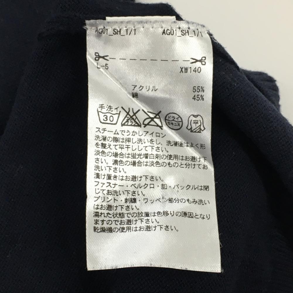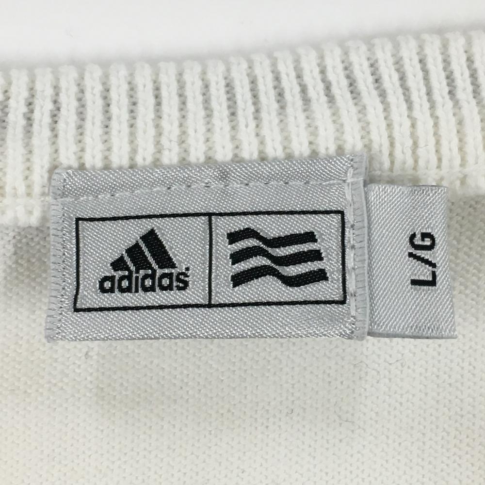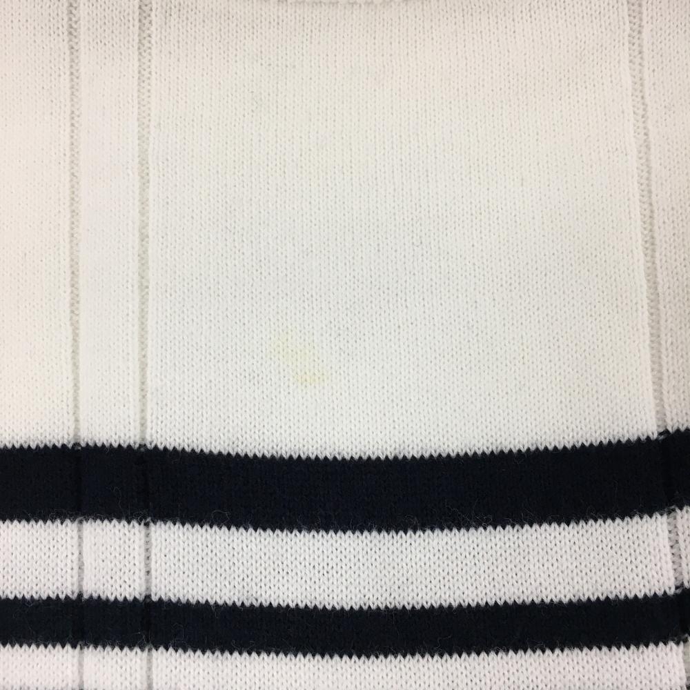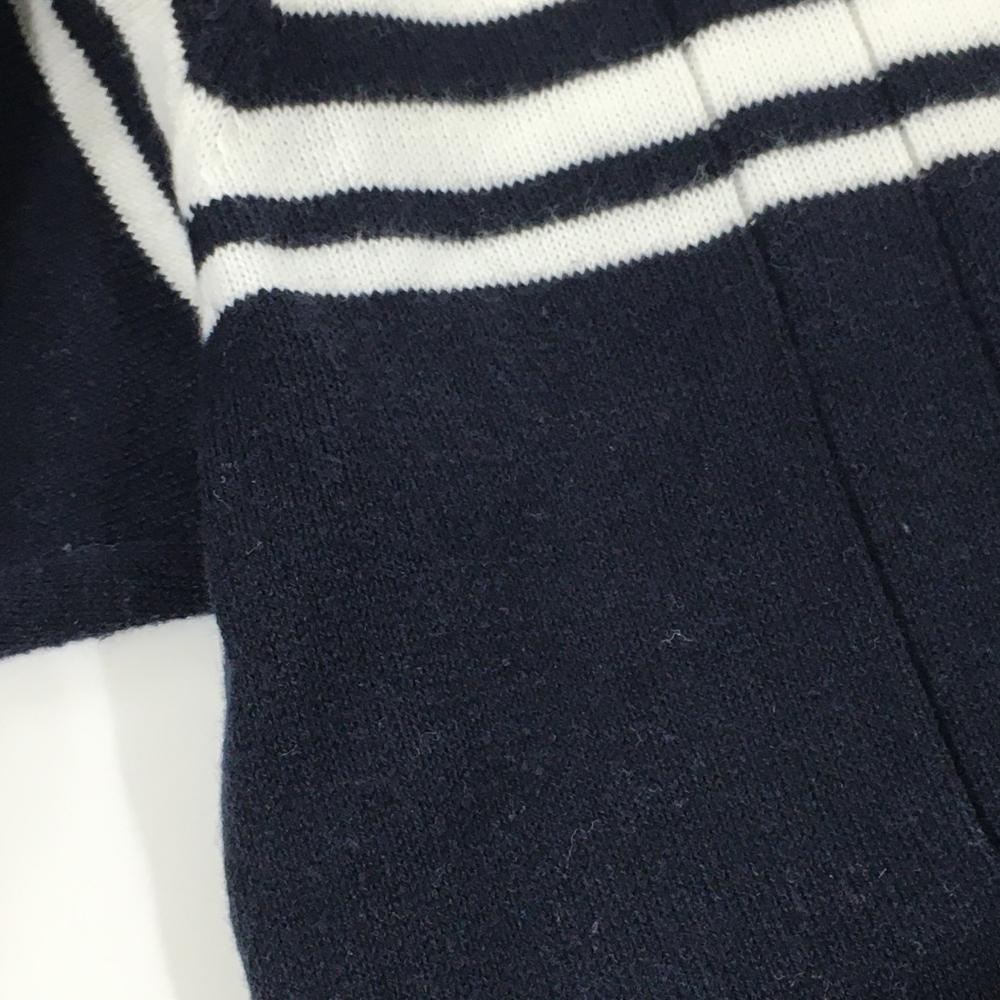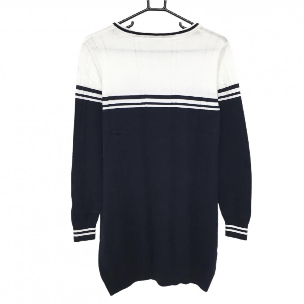 【美品】アディダス 長袖ニットワンピース 白×ネイビー 胸元ライン コットン混 レディース L/G ゴルフウェア adidas