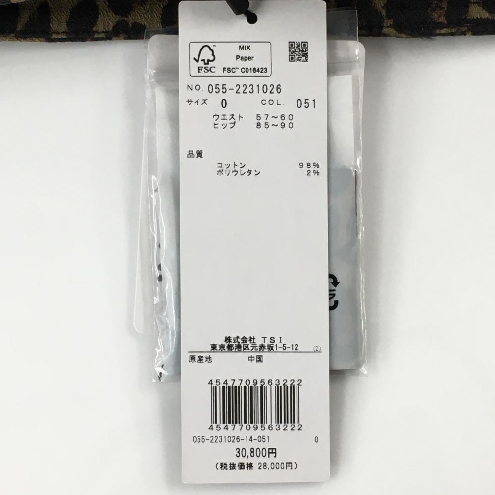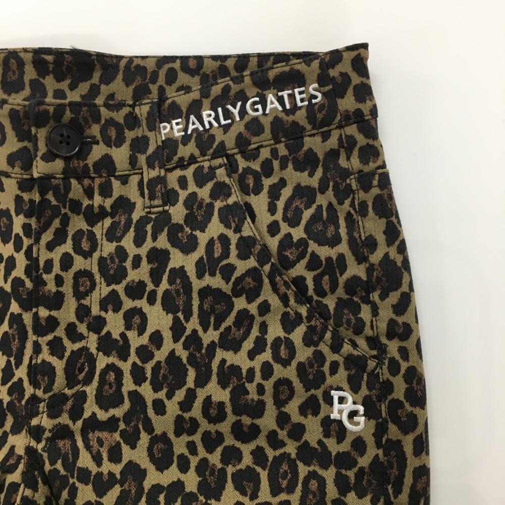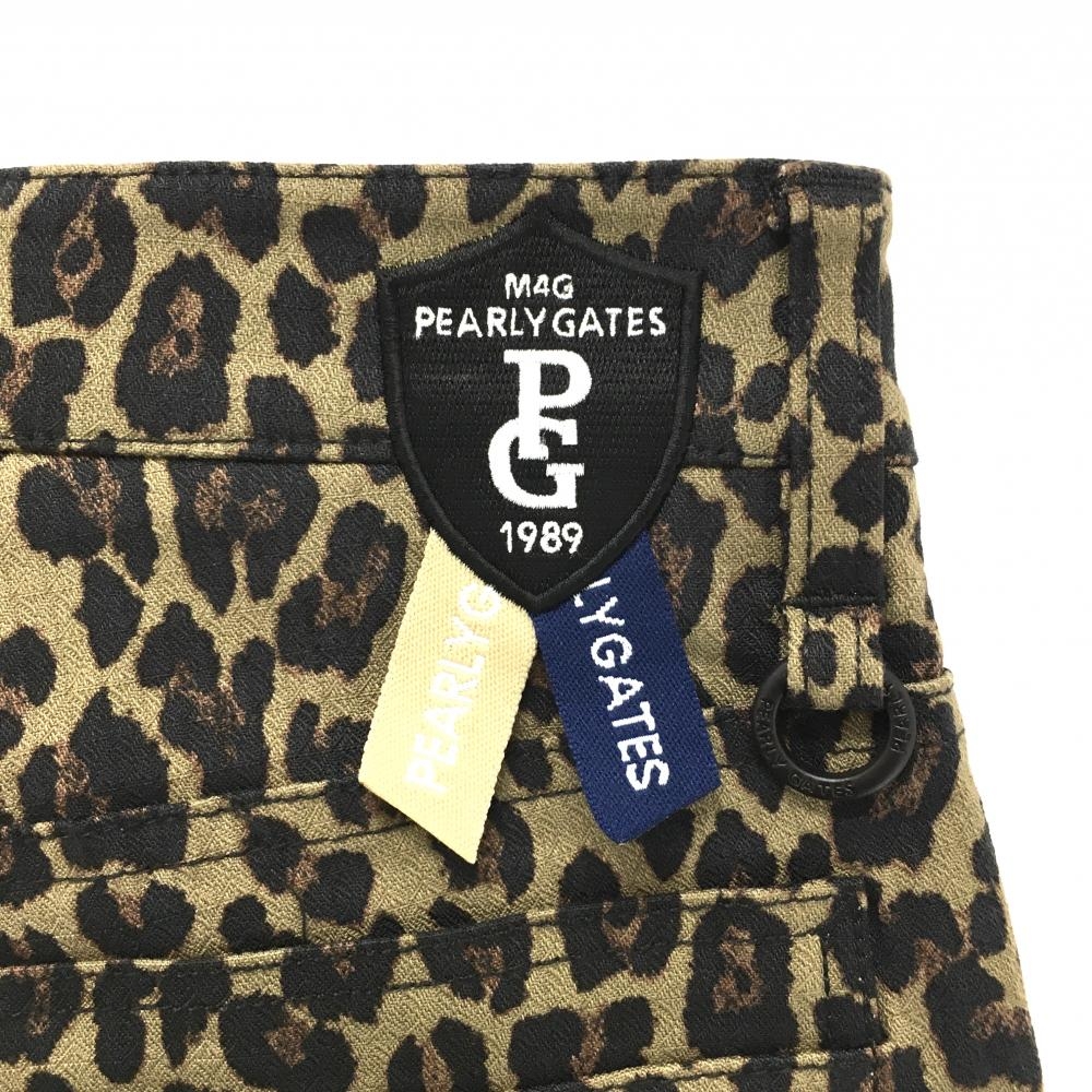 【新品】パーリーゲイツ パンツ ベージュ×ダークブラウン レオパード柄 ストレッチ レディース 0(S) ゴルフウェア PEARLY GATES