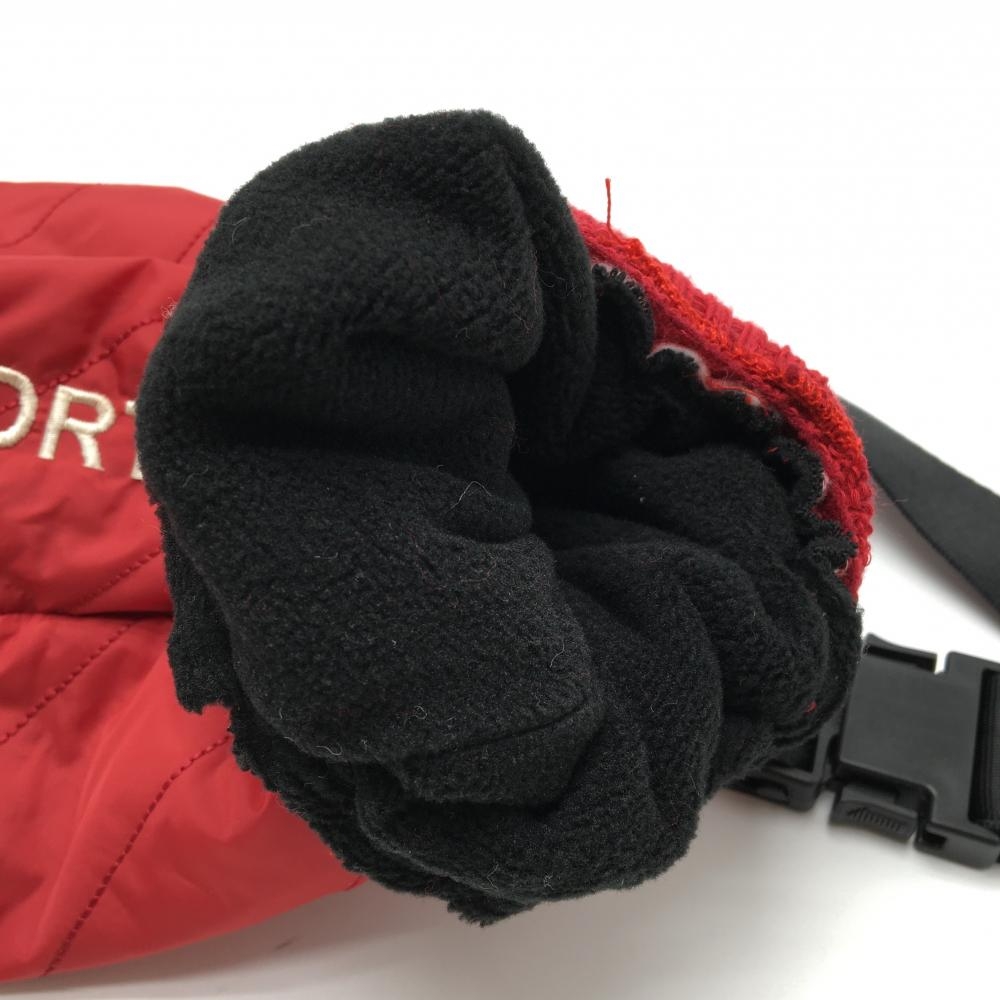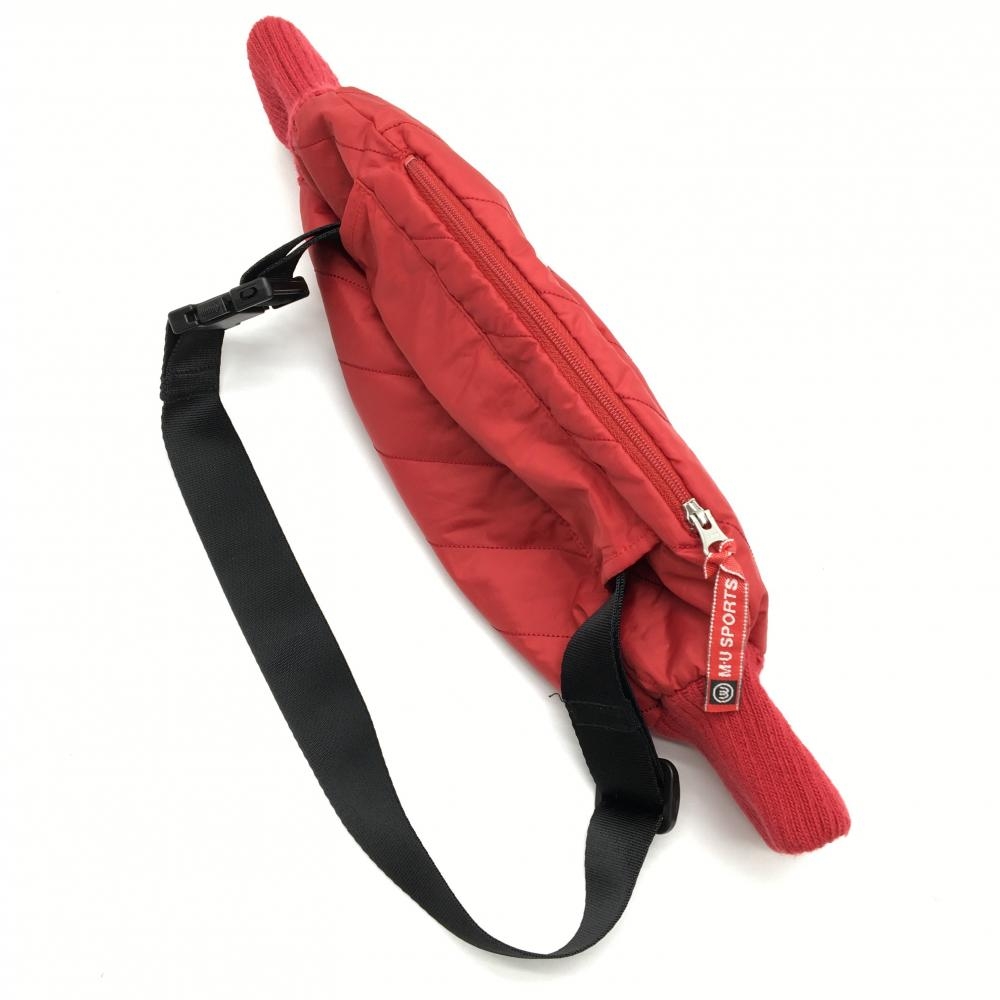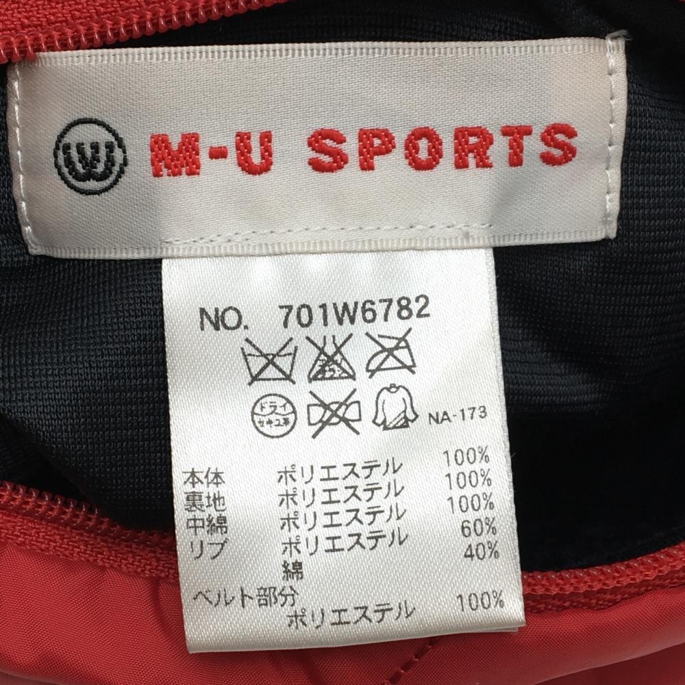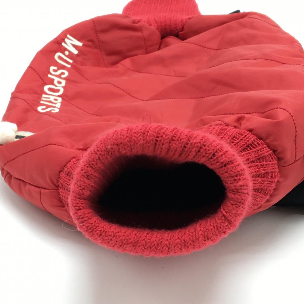 【美品】MUスポーツ 中綿ハンドウォーマー レッド 内側起毛 ストラップ付 レディース ゴルフウェア M・U SPORTS
