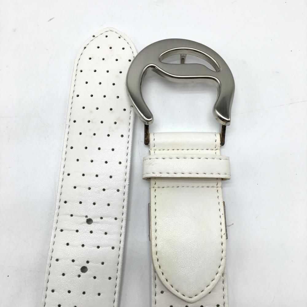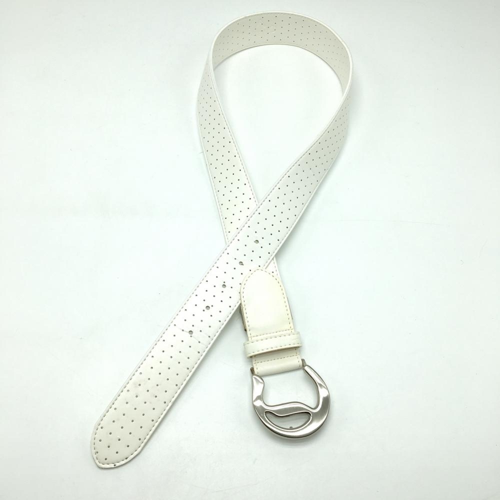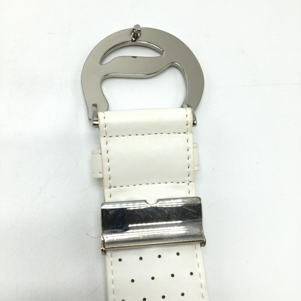 【美品】キャロウェイ トップ式ベルト 白 パンチング ロゴシルバーバックル メンズ ゴルフウェア Callaway