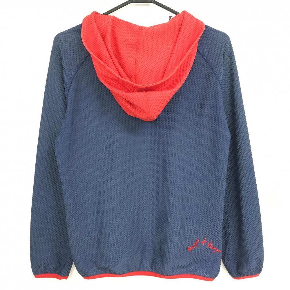 ロサーセン ジップパーカー ネイビー×レッド 凹凸生地 ロゴ刺しゅう ジャケット レディース L ゴルフウェア Rosasen