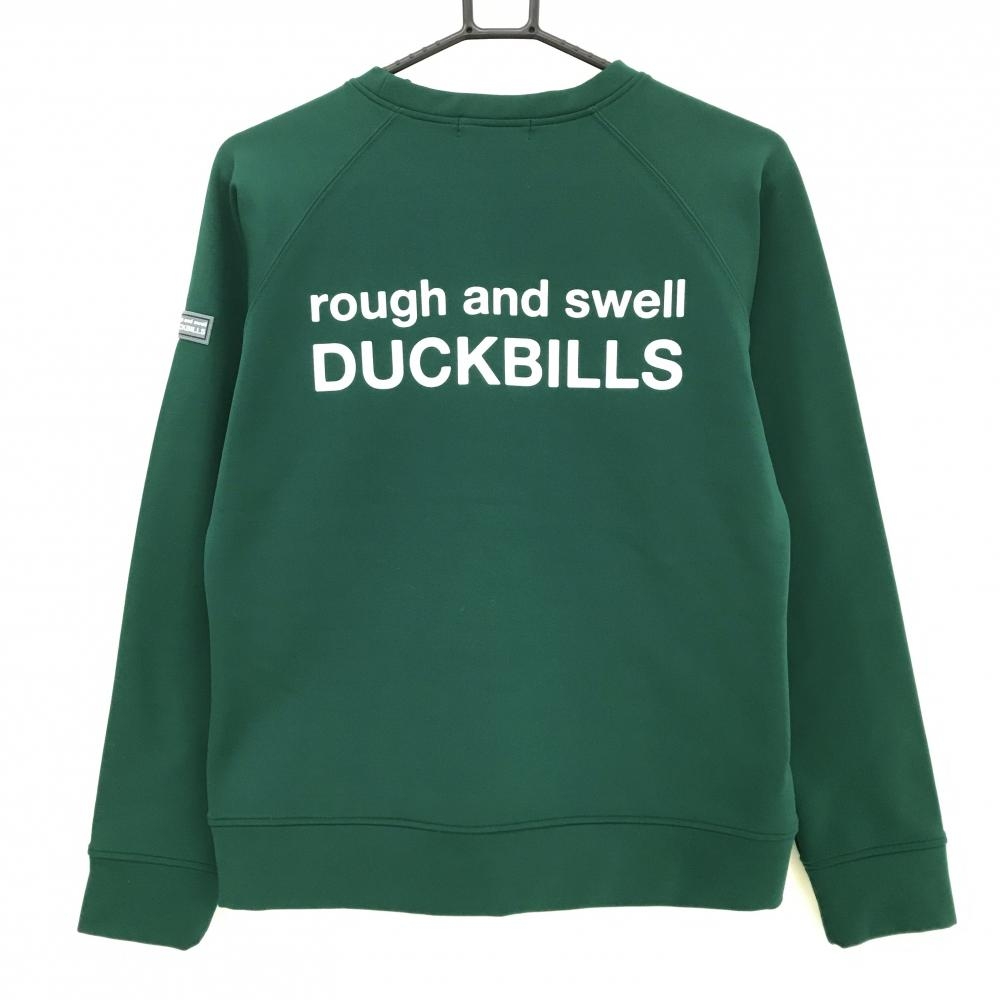 【美品】ラフアンドスウェル トレーナー グリーン×白 ビッグプリント 裏起毛 レディース M ゴルフウェア rough&swell