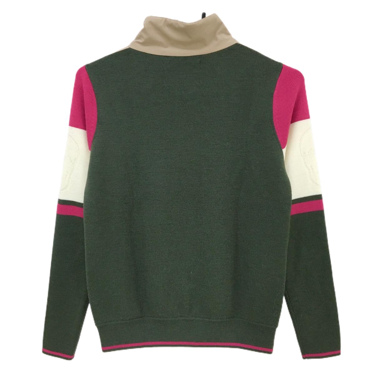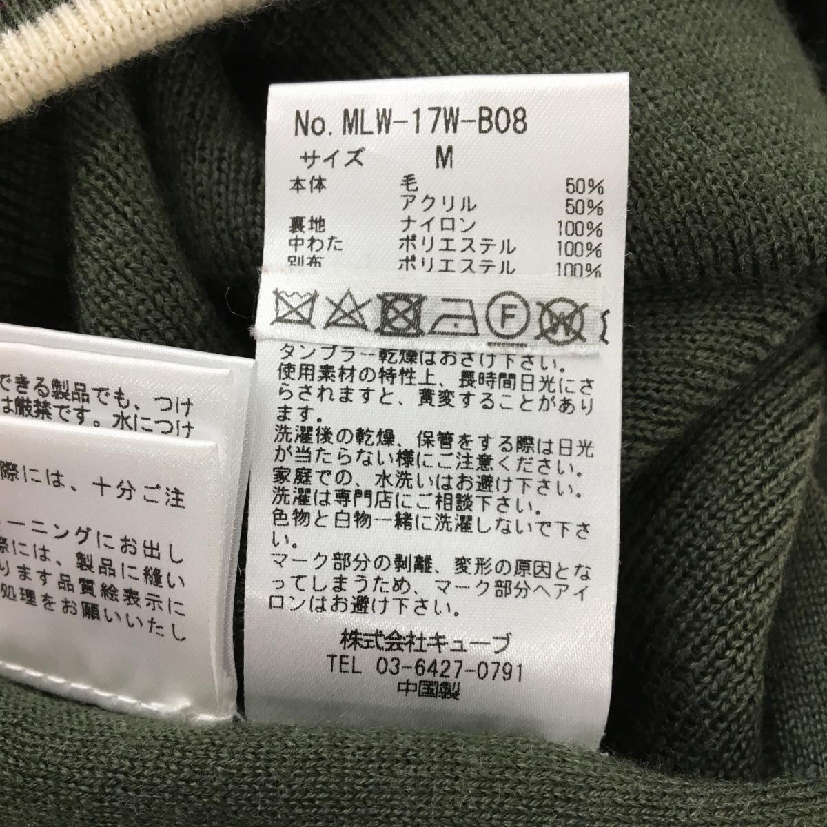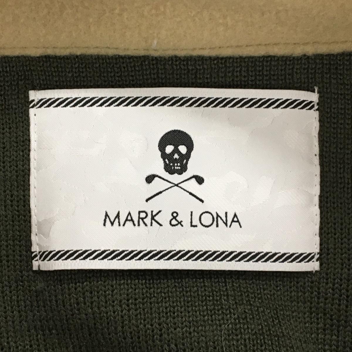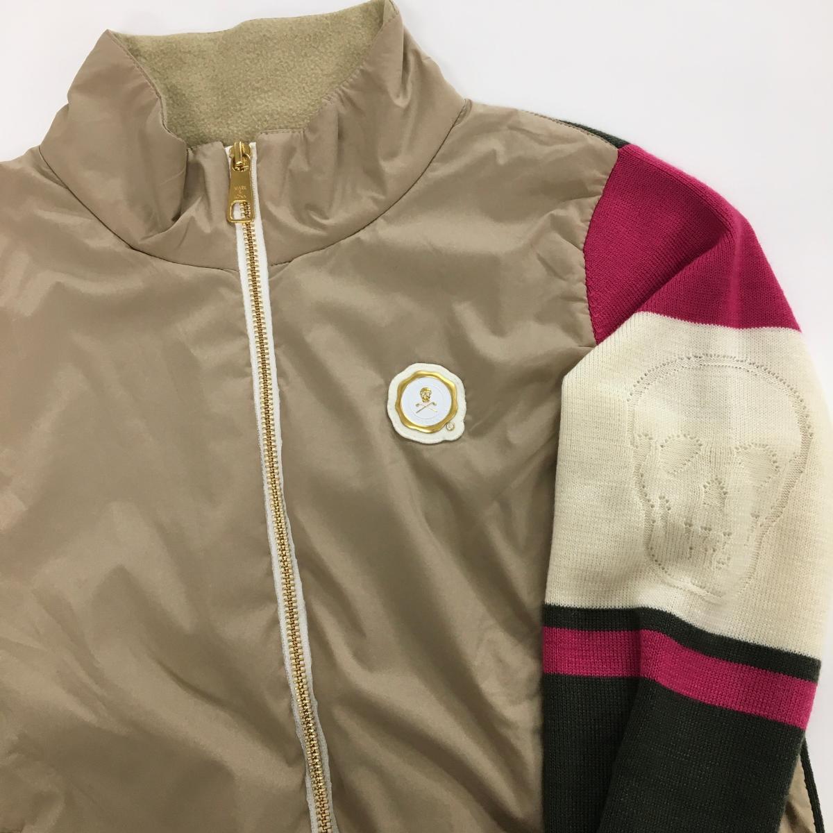 【美品】マークアンドロナ 切替ニットブルゾン ベージュ×カーキ 袖スカル ウール混 メンズ M ゴルフウェア MARK&LONA