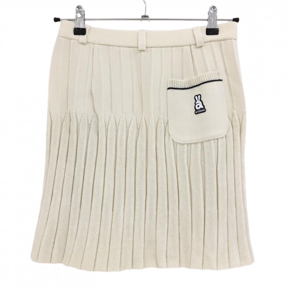 【超美品】アルチビオ ニットスカート アイボリー×黒 プリーツ風 レディース S ゴルフウェア archivio