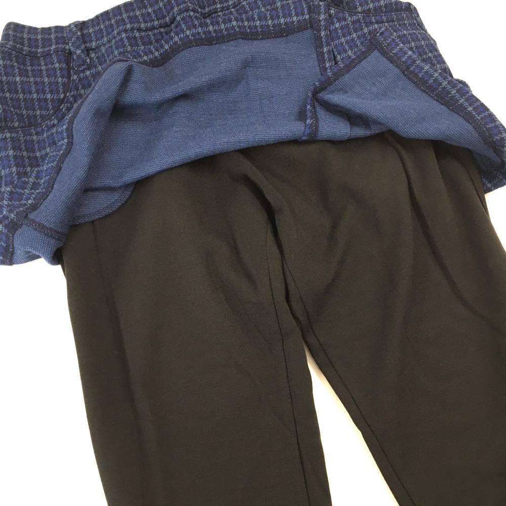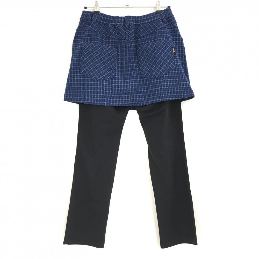 【美品】マリクレールスポール レギンス付スカート ブルー×黒 チェック 微起毛 ウエストゴム レディース LL ゴルフウェア marie claire