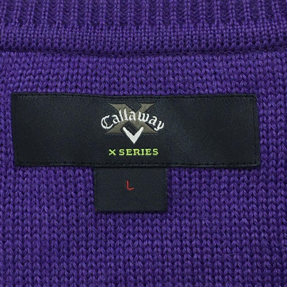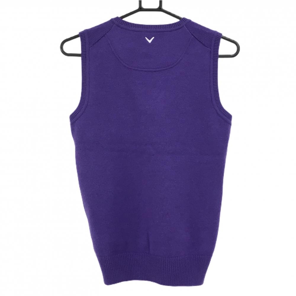 キャロウェイ ニットベスト パープル Vネック 一部ダイヤ柄編み ロゴ刺しゅう レディース L ゴルフウェア Callaway