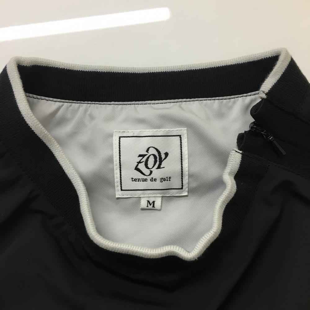 ゾーイ アウターベスト 黒×ライトグレー ロゴワッペン 肩・サイドジップ 裏地メッシュ レディース M ゴルフウェア ZOY
