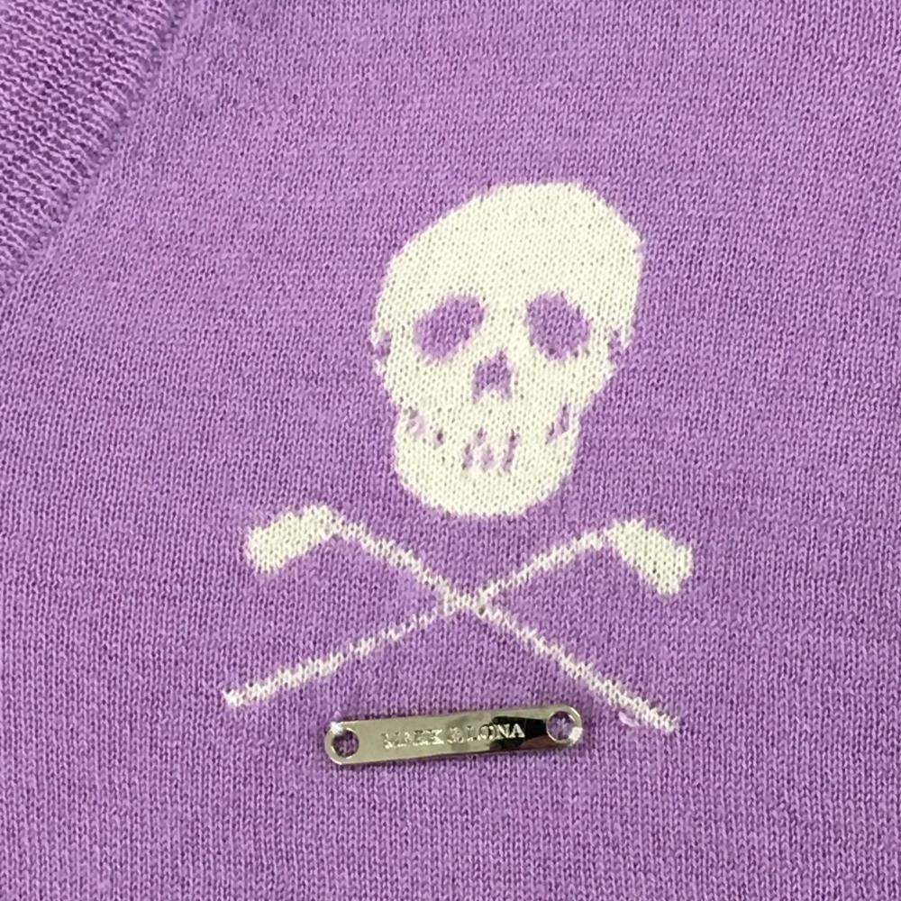 マークアンドロナ セーター パープル カシミヤ100% スカル ニット Vネック レディース WS ゴルフウェア MARK&LONA