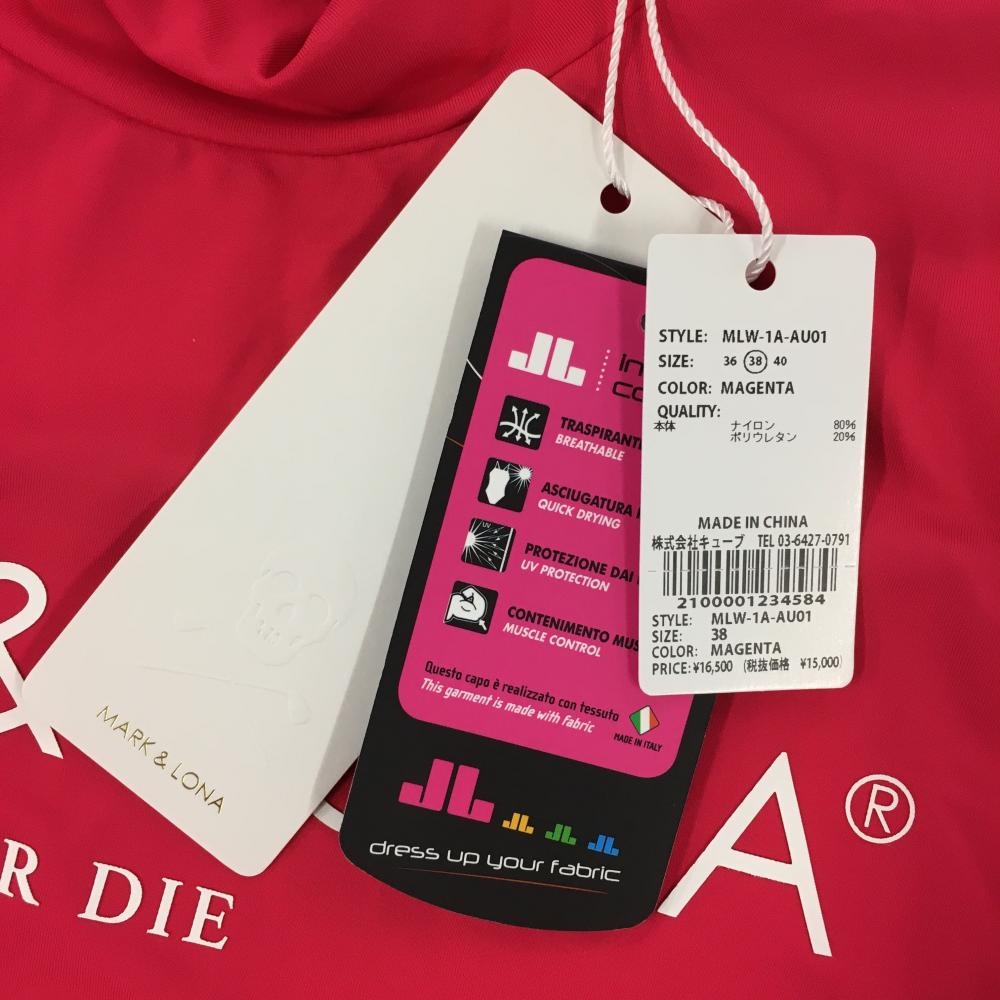 【新品】マークアンドロナ ハイネックインナーシャツ ピンク ロゴ白 レディース 38(M) ゴルフウェア MARK&LONA