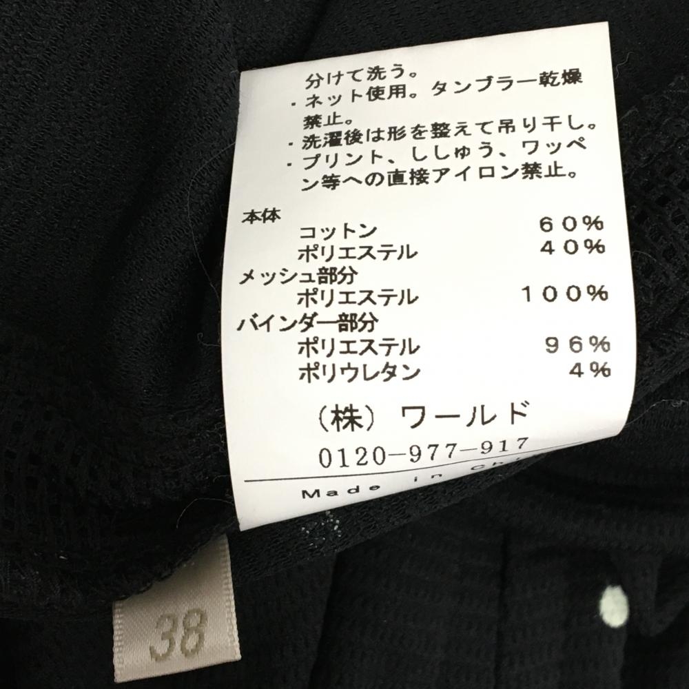 【美品】アダバット 長袖ハイネックシャツ 黒×白 前身頃ドット柄 ハーフジップ サイドメッシュ レディース 38(M) ゴルフウェア adabat