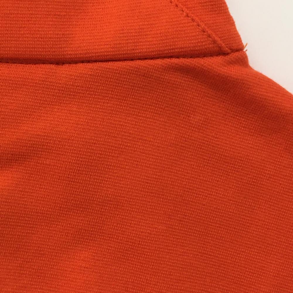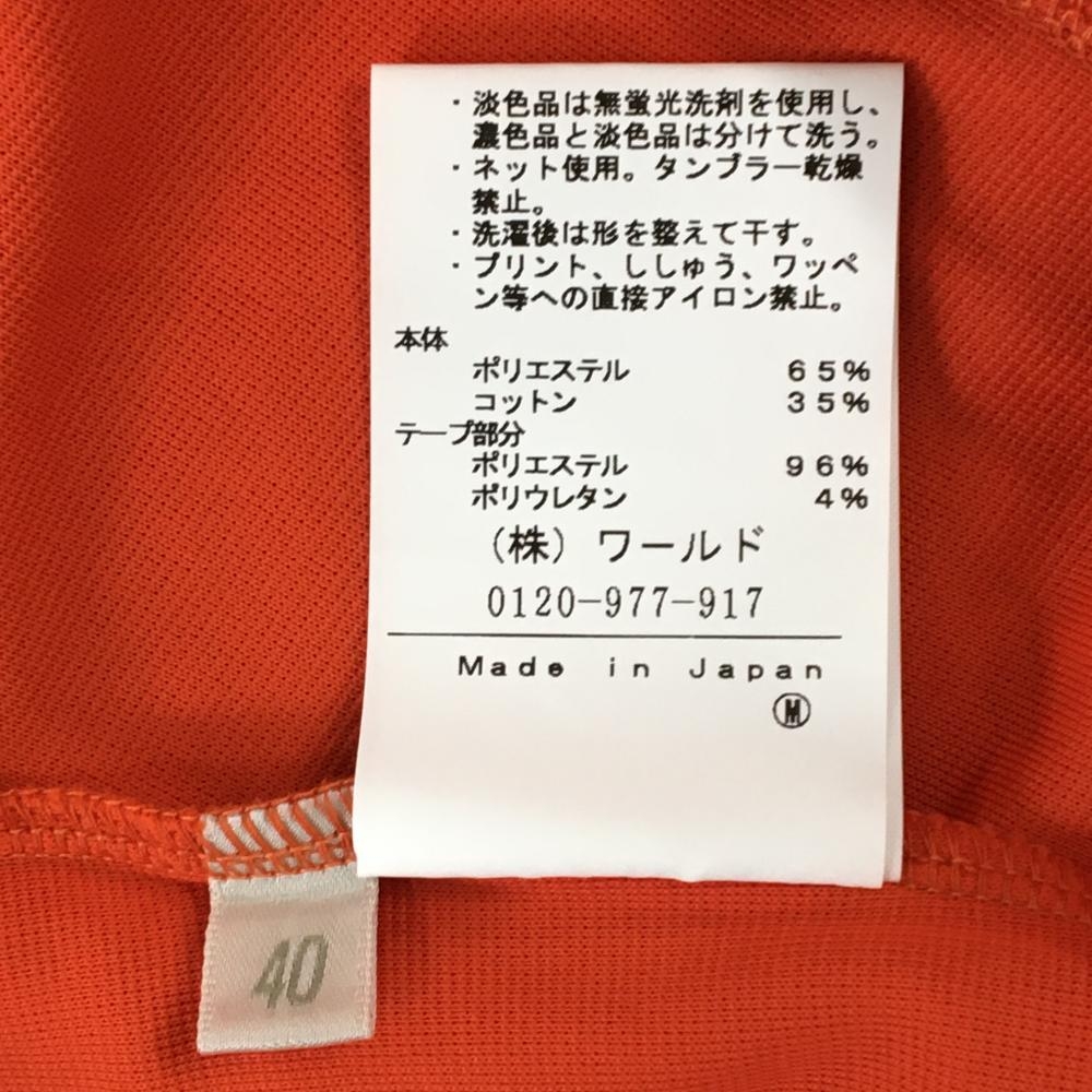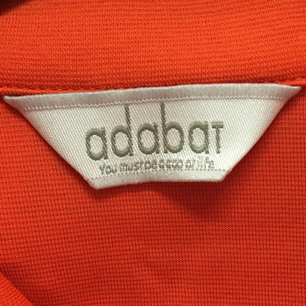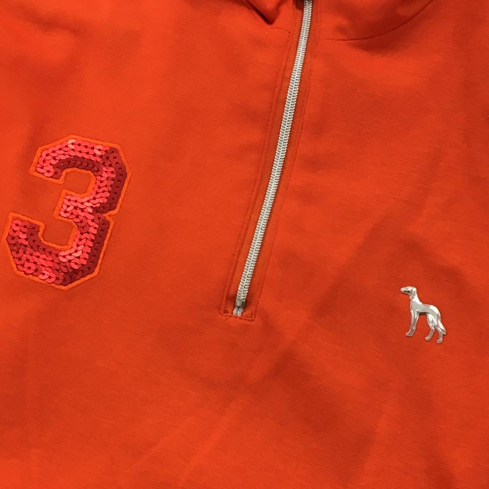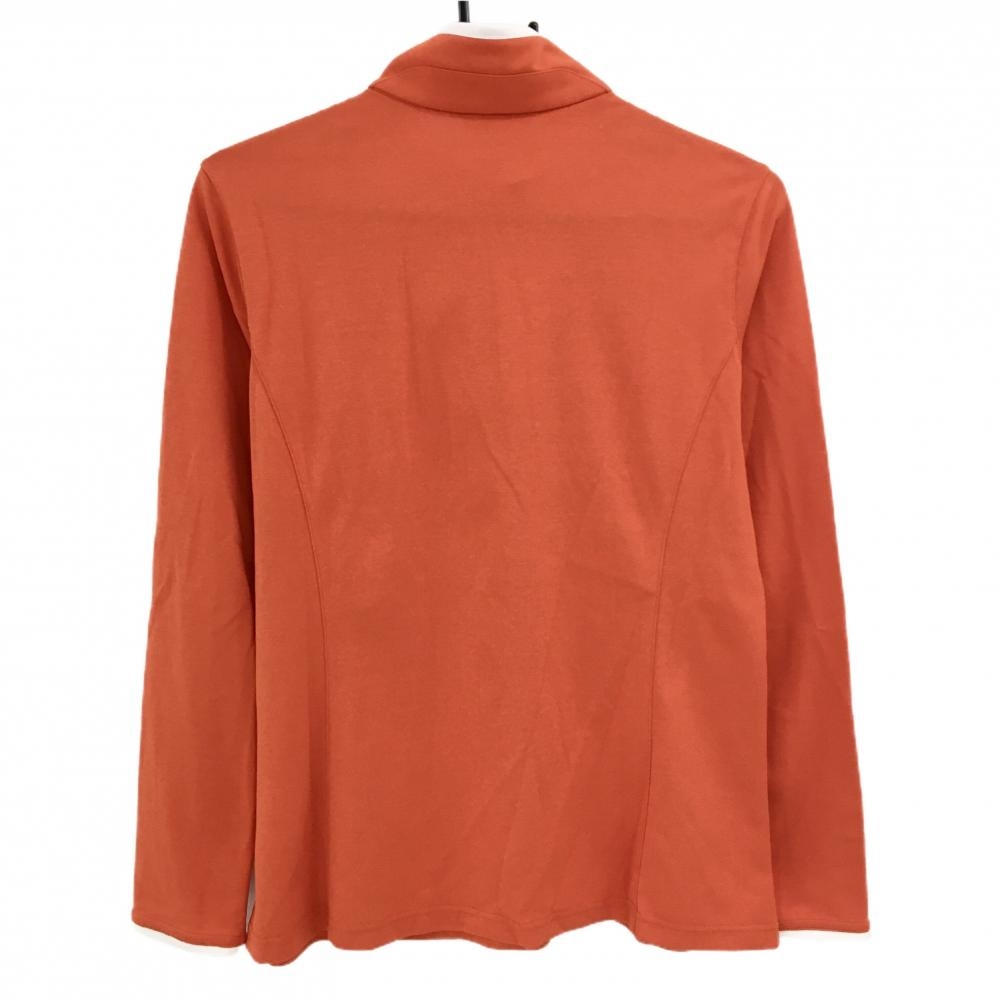 【美品】アダバット 長袖ハイネックシャツ オレンジ×白 ハーフジップ 胸スパンコール コットン混 レディース 40(L) ゴルフウェア adabat