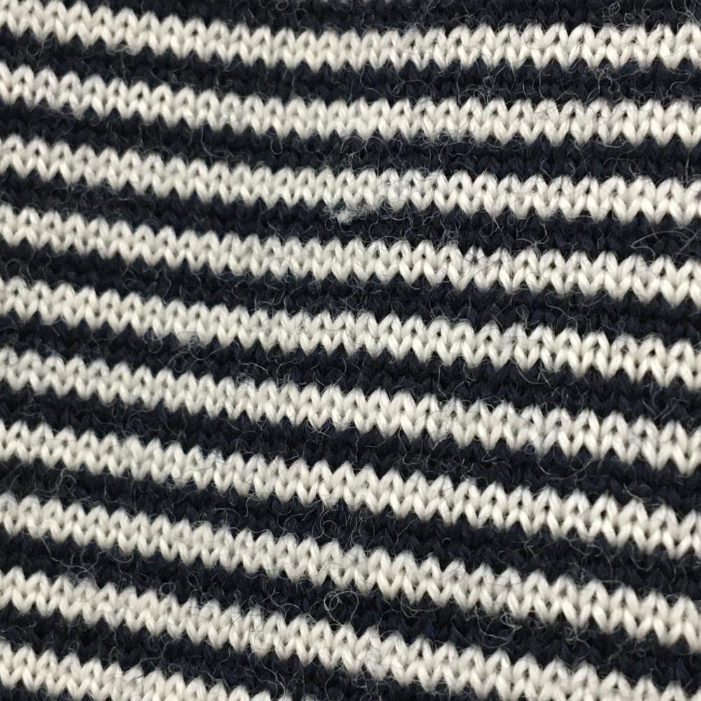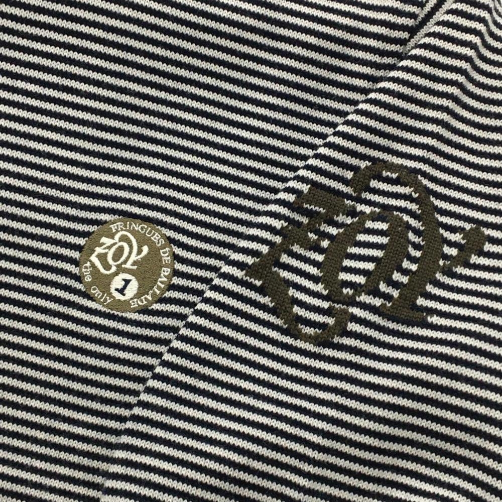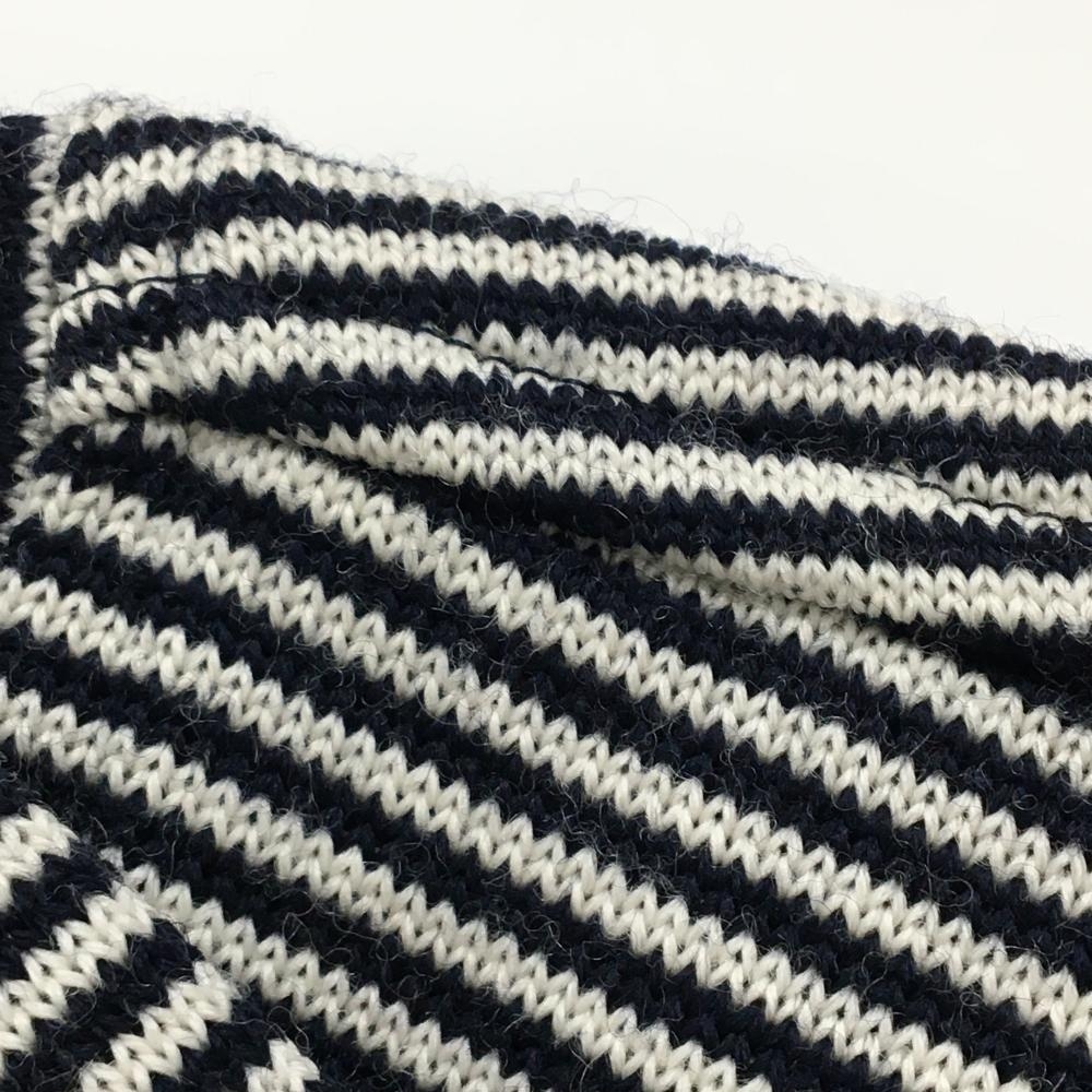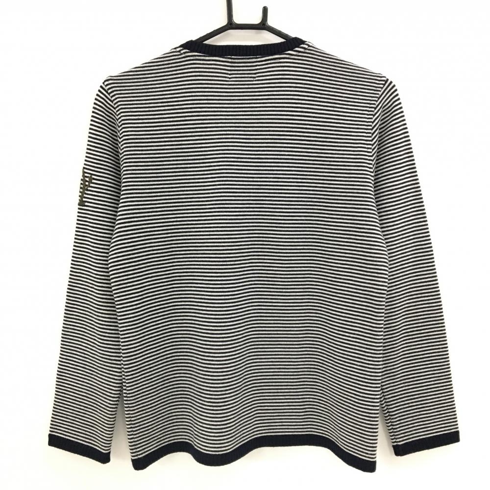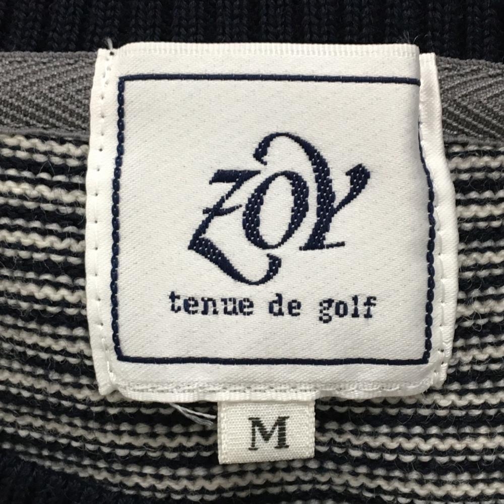 【美品】ゾーイ セーター ダークネイビー×白 ボーダー ロゴ刺しゅう 袖ロゴ ウール100% ニット レディース M ゴルフウェア ZOY