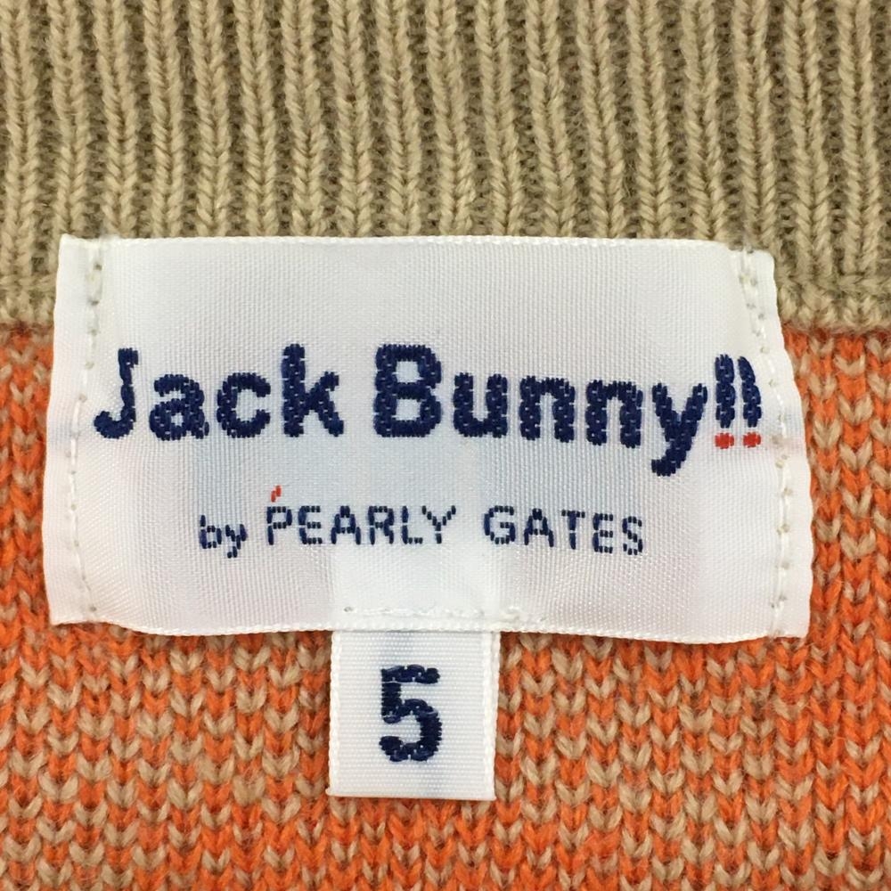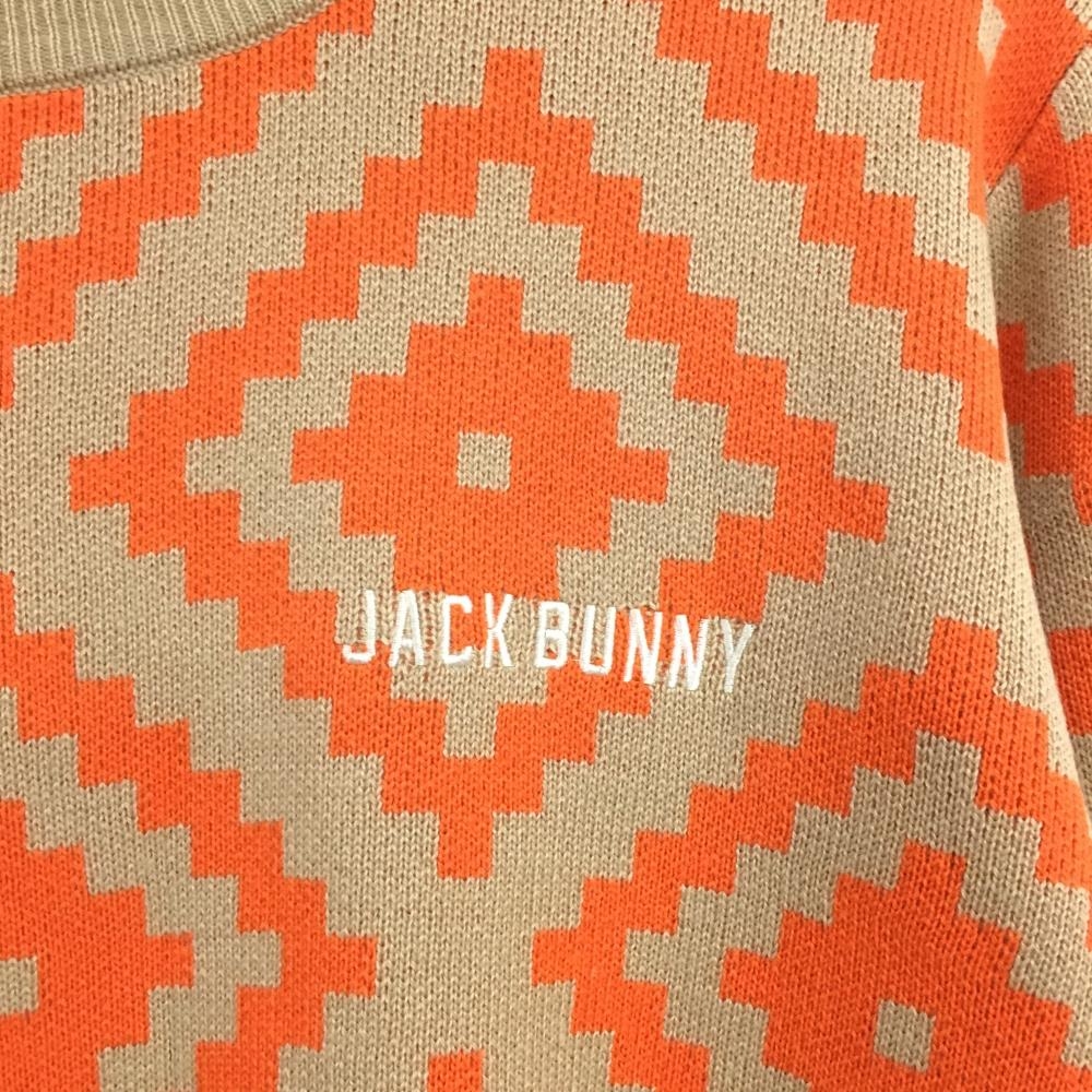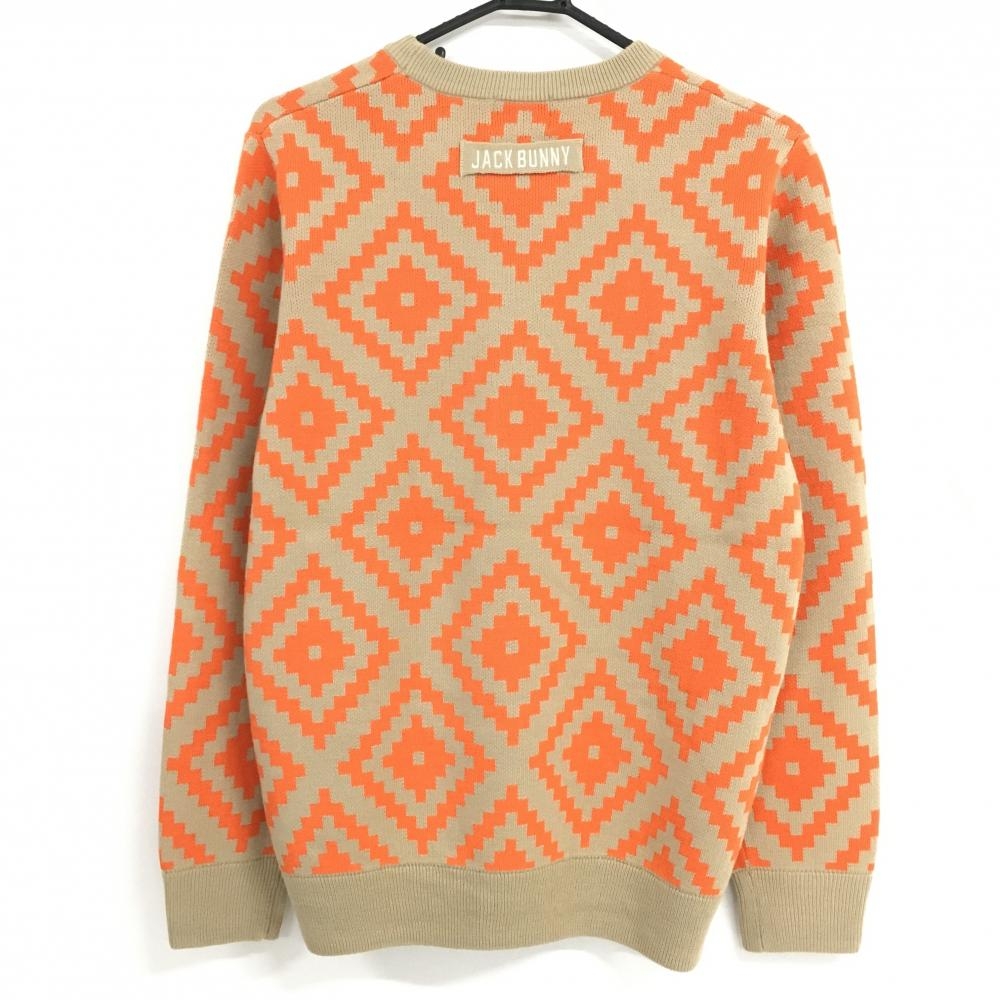【超美品】ジャックバニー セーター ライトブラウン×オレンジ 総柄 ウール混 ニット メンズ 5(L) ゴルフウェア Jack Bunny